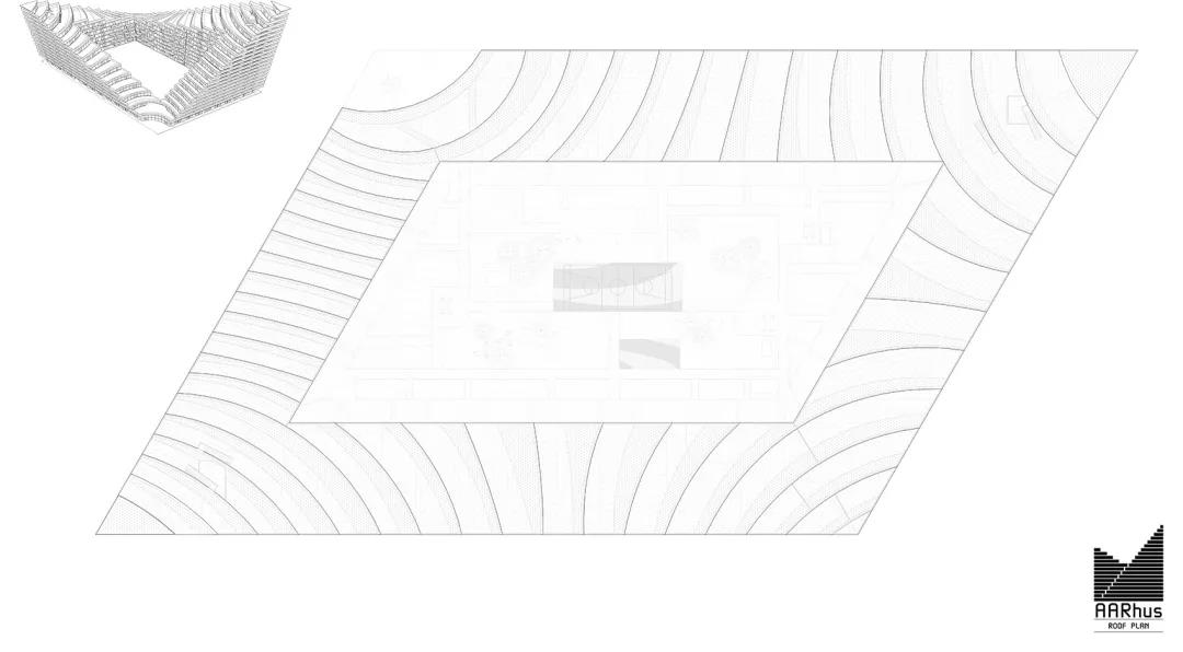 連續的陽臺環繞在建筑外沿,作為抬升的戶外空間的延伸。一些更小的陽臺朝向內部庭院,為每個居住單元提供了充足的戶外空間。庭院作為AARhus的綠色中心,為居民們提供了可以種植蔬菜和果樹的共享花園,需要時還可以作為舉辦社區露天宴會的場地。