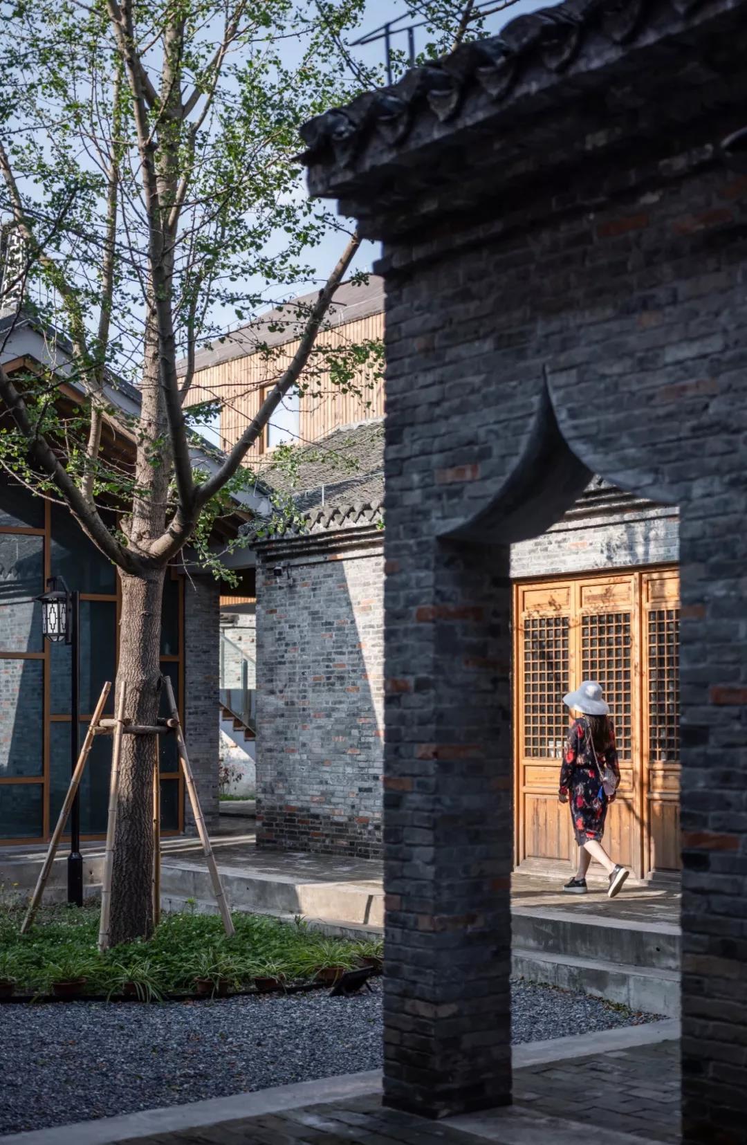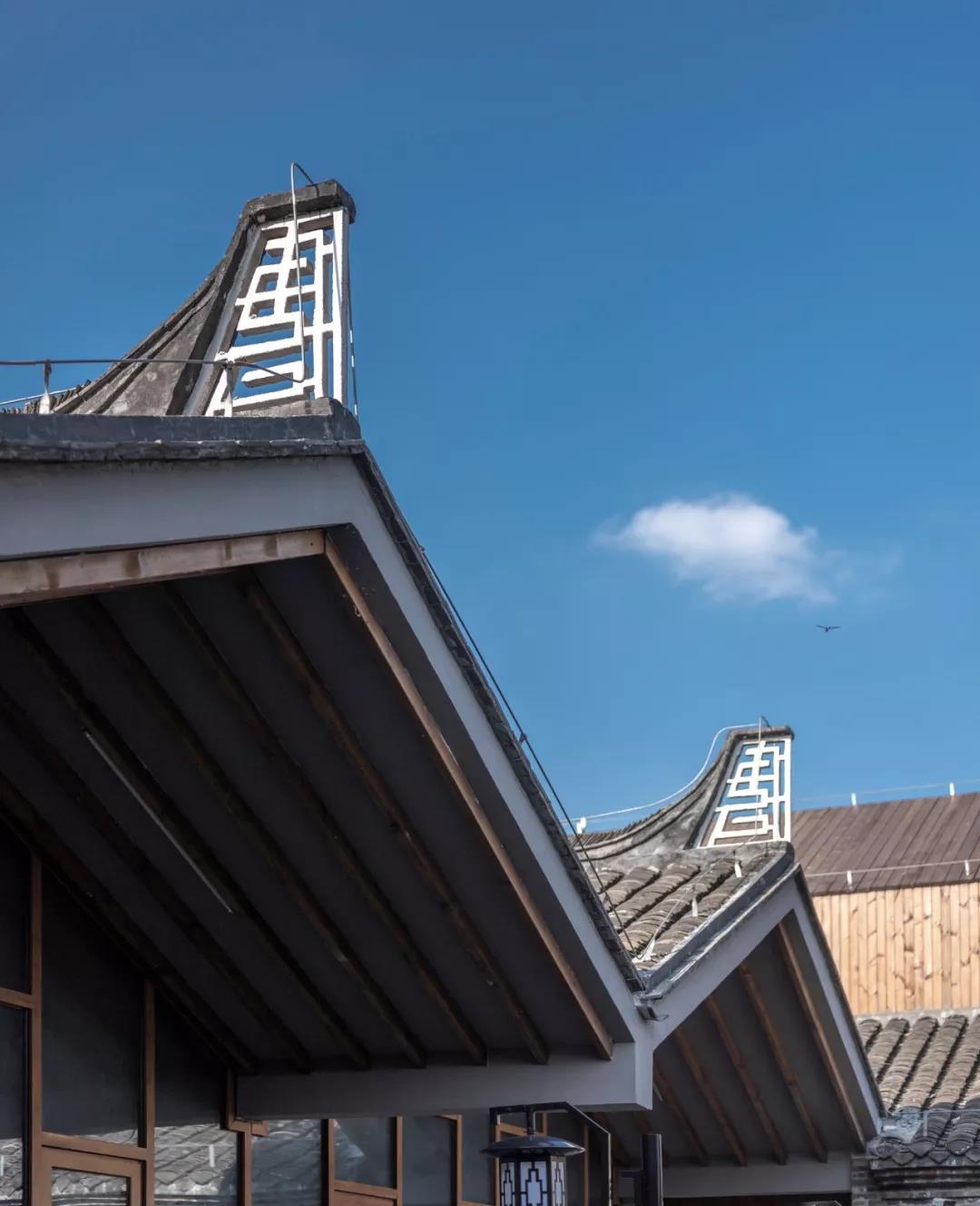 另一方面,在建筑的風格樣式上,唐堡書院在傳統建筑材料的語言上做出嘗試。小青瓦、花格木門、花磚、鏤空磚墻及疊澀的運用隨處都有跡可循。可設計師并不局限于此,試圖在創新的基礎上加以利用。