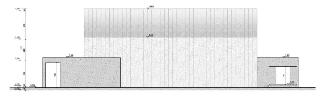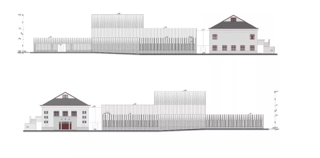 建筑形態突破常規新建處理方式,考慮與優秀歷史建筑相貼鄰建造,采取下挖策略,控制新建建筑屋頂高度不超過歷史建筑屋脊高度。
