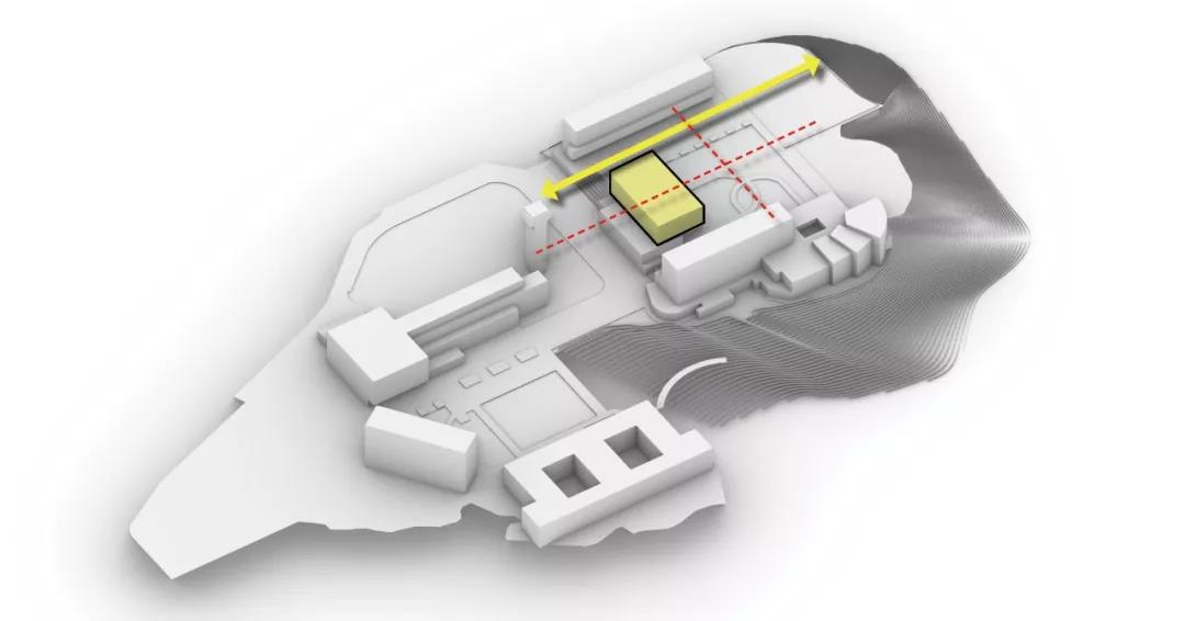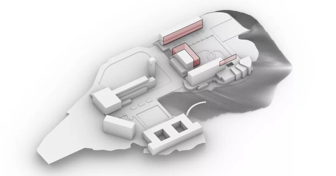 設計之初,我們思考如何將新建宿舍樓在一個已存在的建筑群里形成一個相適應的共存關系,創造一個能與自然交融、 蘊含更多可能且開放連續的建筑空間。故此,設計延續了原有基地的建筑肌理,根據學校宿舍的功能需求,在注重建筑形態及外部空間的塑造與校區融合的基礎上,以圖書館為固定標志性建筑,遵循軸向平面上方向感的設計原則,保留一條通往聯合書院大道遠處景觀的視覺走廊,并通過和諧的尺度及相似高度的建筑形態和圖書館、曾肇添樓、思源館以集群的形式圍繞中央庭院進行串聯圍合展開對話。