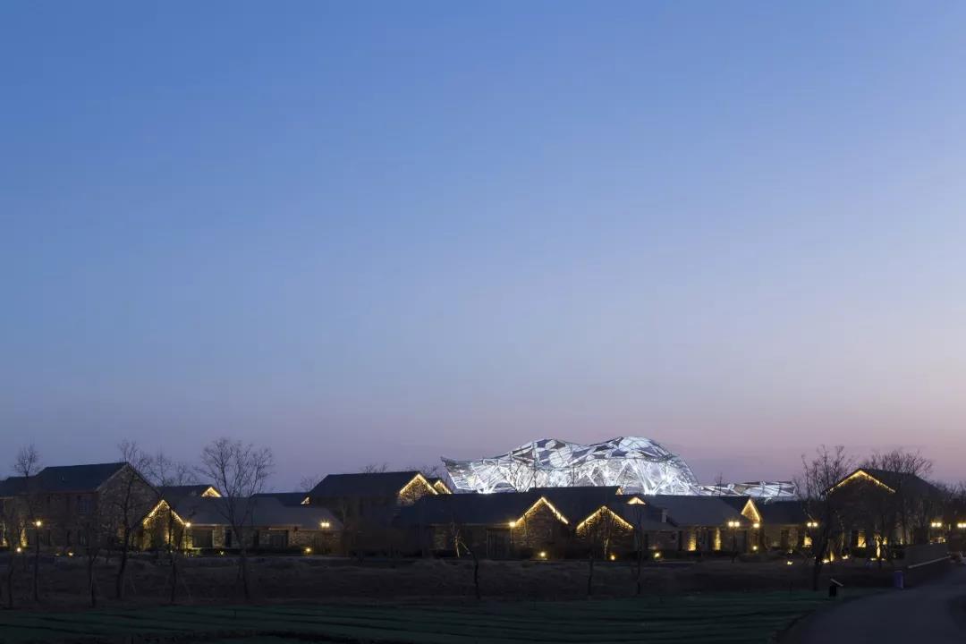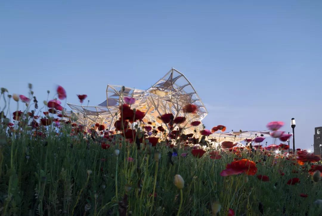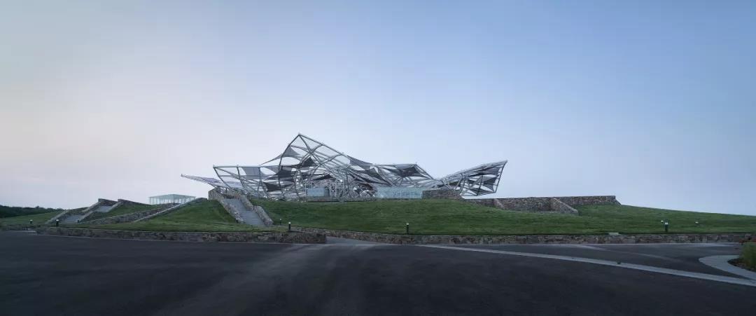 影響劇場體量感的最重要因素是結構選型。常用的拱或懸索等大跨結構形式,在花海當中很容易形成類似體育場或者機場候機樓的印象。分析形成這種感覺的原因,與結構線性的轉折拐點多少,線性組合均有關系。