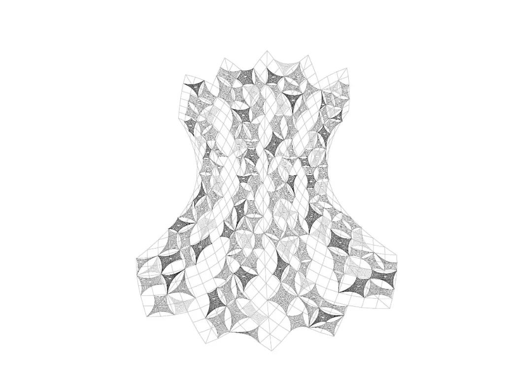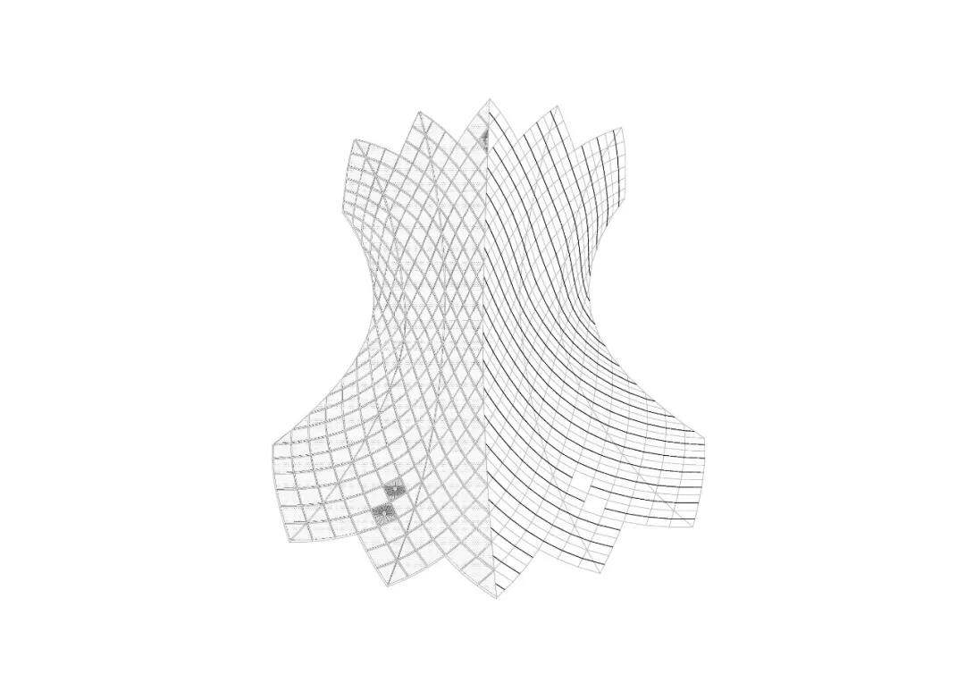 屋面設計的難點是曲面形態控制。造型要求輪廓起伏轉折以減少體量感,曲面中部則因為排水方向的限制,需要平滑避免過多凹凸,造成無法排出的內凹面。