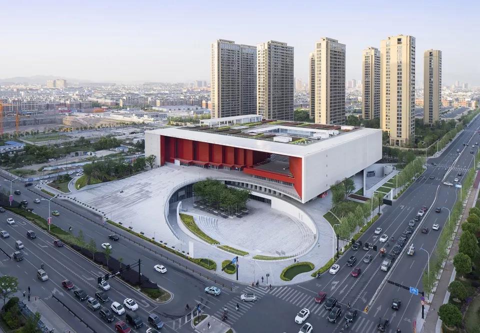 義烏文化廣場選址于義烏經濟技術開發區義烏江畔,總建筑面積為82360平方米,是集文化娛樂、教育培訓、體育健身等多種功能為一體的大型文化綜合體。義烏以小商品而聞名于世界,這里中小企業密集,民營經濟高度發展,反映在城市建設上就是大量同質化小體量高密度的建筑彌漫,市民渴望標志性城市建筑以及開放的公共活動場所。