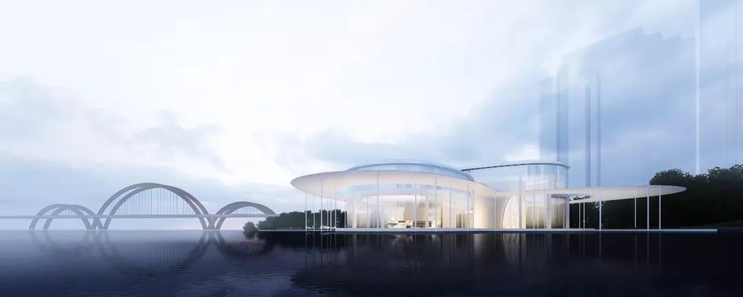 我們的構思理念來自于思考如何讓建筑更好地融入周邊環境,從而模糊室內外的界限,在過渡性的空間營造出一種不確定性的氛圍,增加神秘感,包容性與趣味性。通過對材料厚度,材料反射,建造節點等的推敲,以視線的通透銜接內外環境,從而使江景,園景以及藝術活動,人的行為融合在一起,達到一個boundaryless的空間效果。