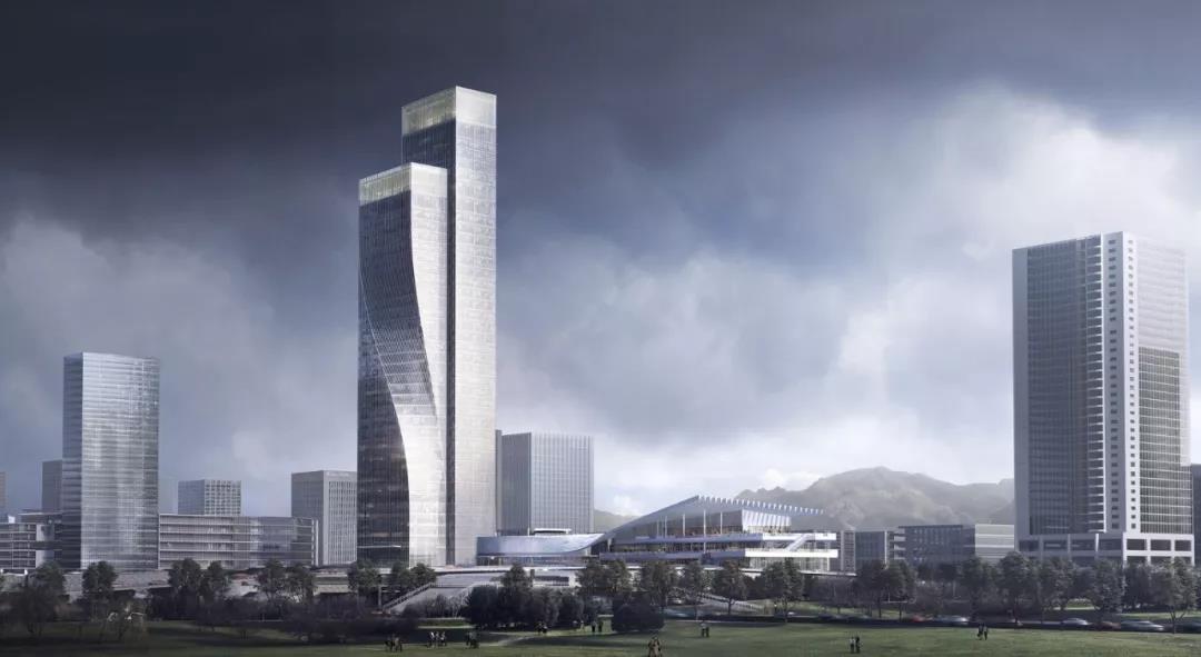 由Aedas設計的重慶高科集團有限公司新辦公樓坐落在重慶北部新區幸福廣場北側,現已初見雛形,鋼筋水泥間直線與曲線咬合錯疊,玻璃幕墻隨之彎轉變化,以堅硬的建筑材質表現了柔韌的弧度之美。項目預計2022年即可完成竣工,屆時它將成為“世界第一扭”的強力競爭者。
