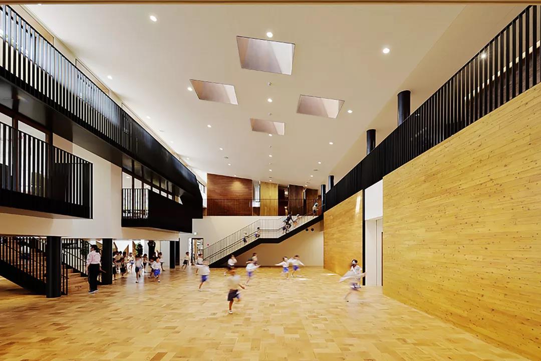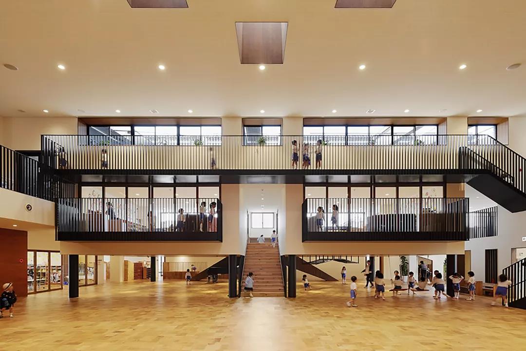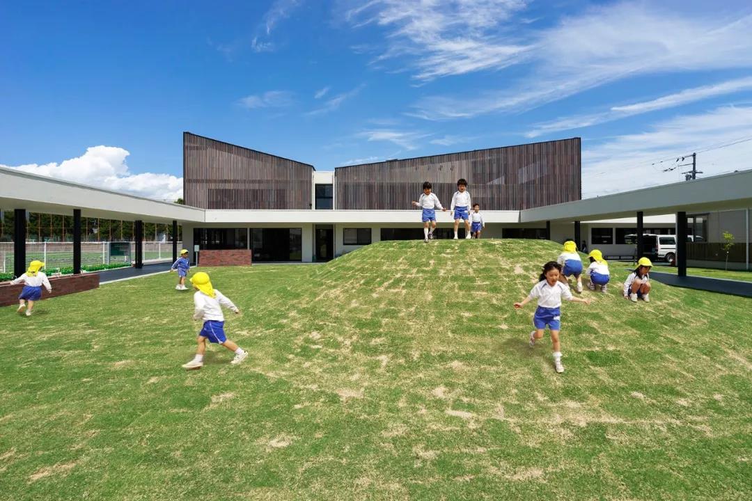 這是愛媛縣松山市的新建幼兒園項目。近年,地方城市以車代步。孩子們上學放學由汽車迎送變得平常,孩子們在日常生活中活動身體的機會減少。由于手機游戲的普及室內游戲增多,孩子們自己在室外擁有豐富變化的環境中創造發現游戲的機會也被剝奪。在這樣的現狀下,以「通過游戲培育健康身體的園舍」為概念對KO幼兒園進行了改造計劃。