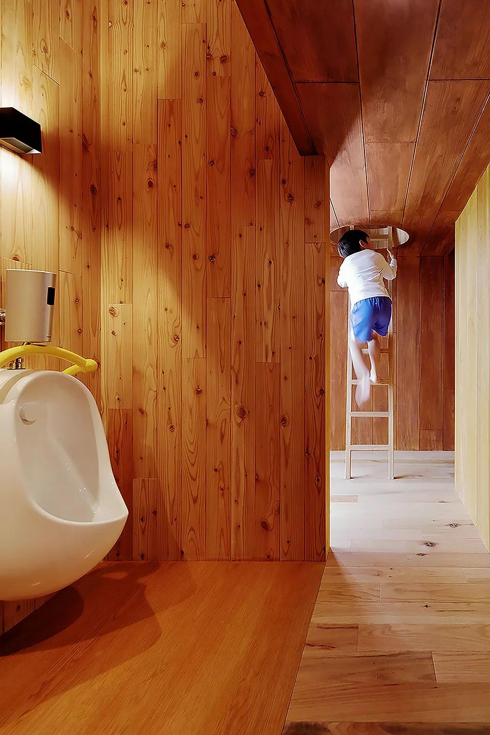 像這樣在園內外設置能引發身體做出相應動作的游戲場所,不僅孩子們的運動量自然而然增加,體力得到增強。這樣的空間還讓孩子們升起創造游戲的欲望,刺激好奇心,是孩子們能健壯成長的培育環境。