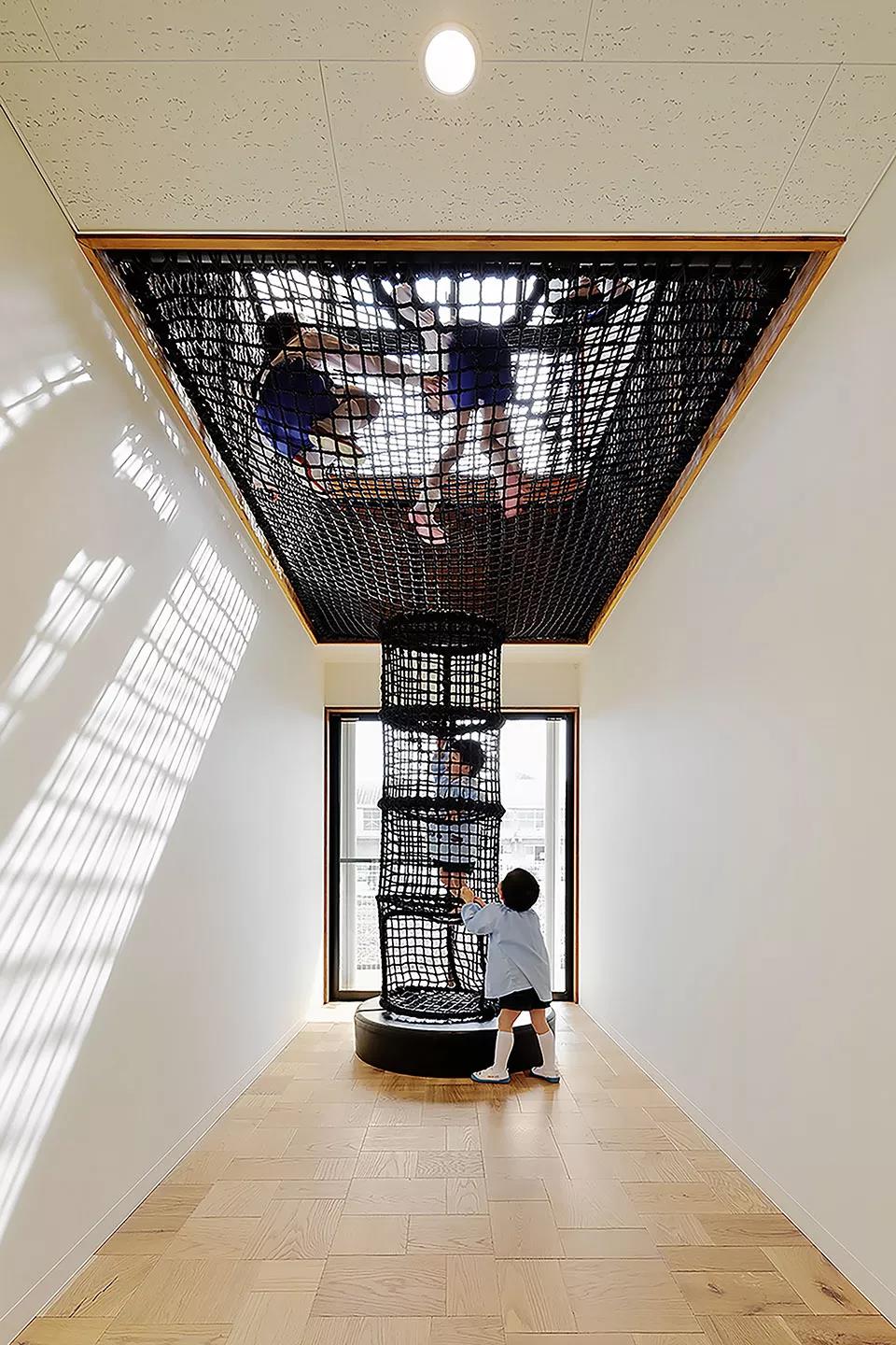 ▼幼兒園內的攀爬網設施
