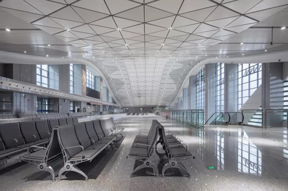 同時站房將桐廬的山水特征從立面延伸至室內,穹頂的流線造型與三角狀鋁扣板即呼應了遠處平緩、波瀾不驚的江面。