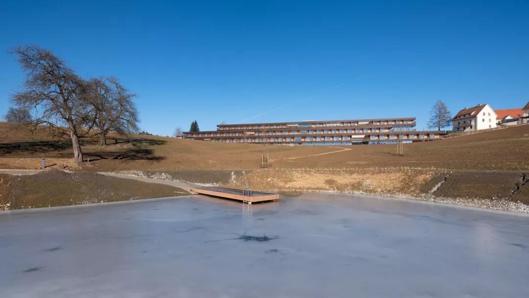 自然地形的景觀在結構之間延續。所有房間都有良好的文化景觀視野。研討會區和繁忙的初級保健診所不僅擁有良好的景觀視線,還提供了通往自然的便捷地面出口。沐浴和桑拿區位于建筑南部的地形基礎之上,在那里可以欣賞木屑小徑與池塘景觀。