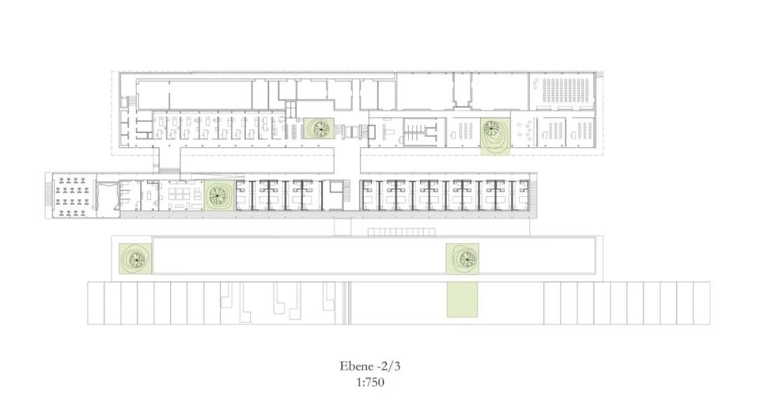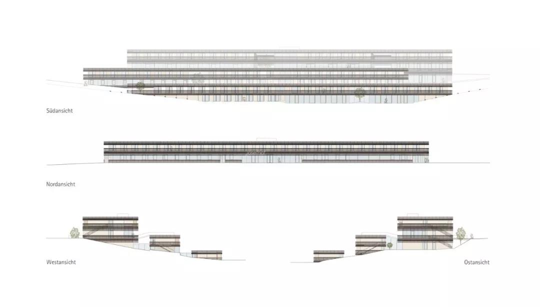 從接待大廳開始,所有區域都是無障礙的,可以讓人們快速進入。與立面相反,簡單緊湊的窗戶結構被遮擋,避免了太陽直射。最佳隔熱立面和背陰的中庭滿足了建筑的能源需求。建筑的承重結構采用高度預制化這一十分經濟的建筑方式。