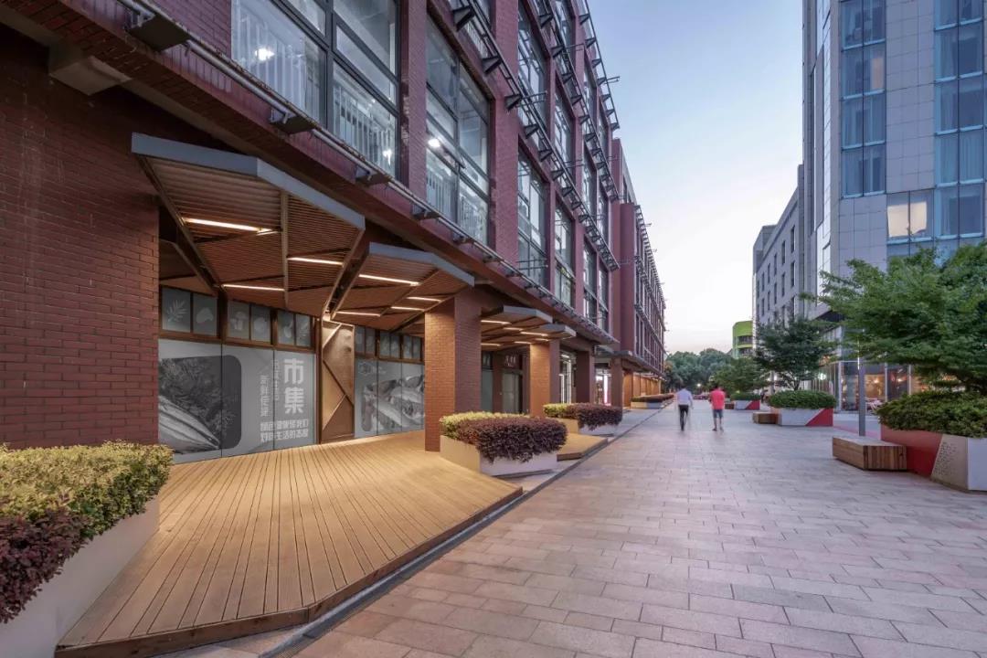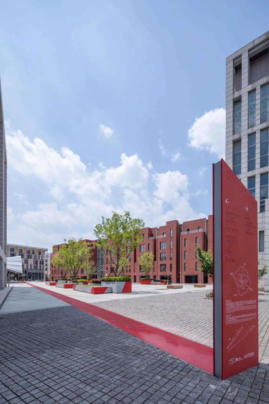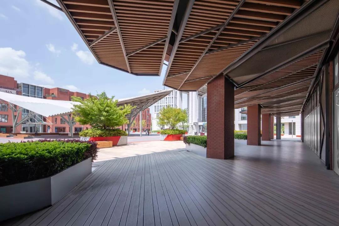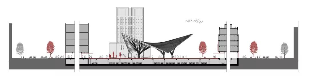 西側道路是切入廣場的主要入口,它連接著安亭游覽的基礎設施。考慮到這一點,Kokaistudios將其建筑的立面開放給更多的商業空間,擴大了步行區域并為餐飲場所設置了露臺休憩座位。