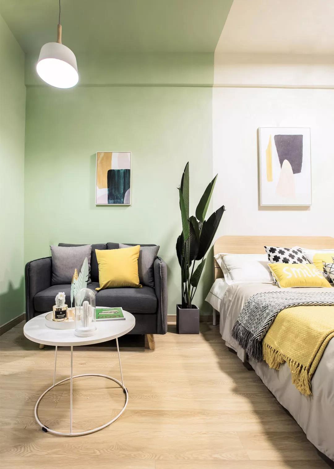 公寓部分共102間,因原有建筑的不同柱網尺寸產生了5種戶型,進深從5.6米到7.6米不等。公寓單元的空間設計根據進深不同分成了三到四個模塊分區,依次是入口/衛生間、起居空間、睡眠空間、以及延展工作空間,每個部分采用不同的墻面色彩和家具搭配進行區分。原有倉庫建筑的二層較高,因此設計中還加入了LOFT戶型,讓起居和休閑空間與睡眠空間垂直分離。公寓單元的這種系統化的處理方式加大了套內的空間感,同時也通過明確的功能分區提升了居住空間品質。