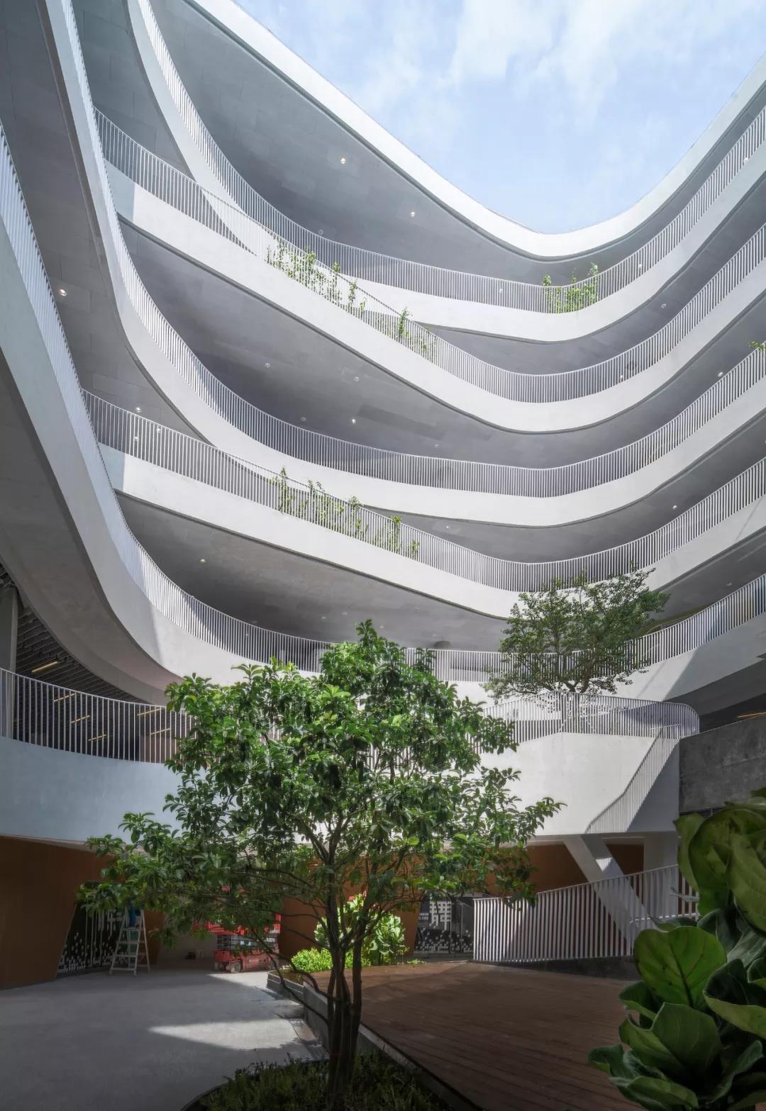 “山谷”庭院、上下錯動的水平層板、疏松的細胞組織以及有機的綠化植入系統均是項目中回應高密度和亞熱帶的南方氣候的建造策略。而更為重要的是,建筑師希望通過紅嶺實驗小學的建造過程和結果進一步探索高速發展之后的高密度城市里公共性設施的全新空間范式。
