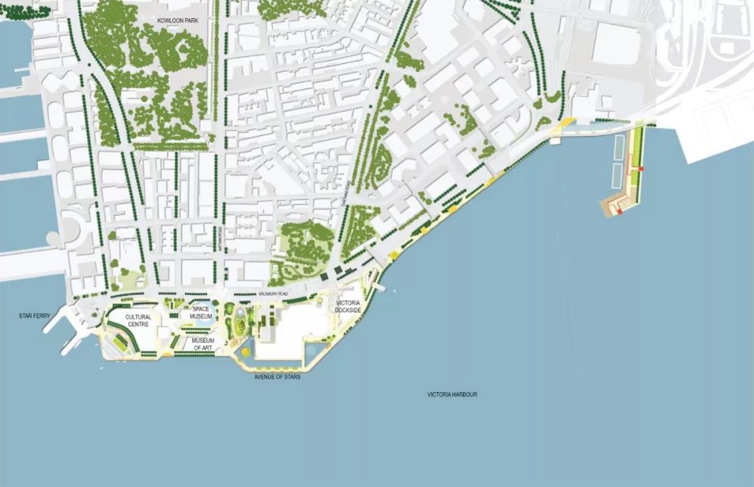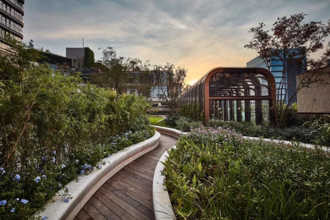 階梯狀外觀設計使得自然光充分照亮整個空間地面,一系列的觀景廊和蔭蔽的室內空間使得游客得以一窺維港美景,將尖沙咀與K11 MUSEA連接起來。形狀獨特的地板互相堆疊,劃分出草坪、空中花園和滿載季節性植物的小型公園,為社區提供急需的公共場所和兒童游樂場 —Donut Playhouse 和孔雀家族主題樂園。