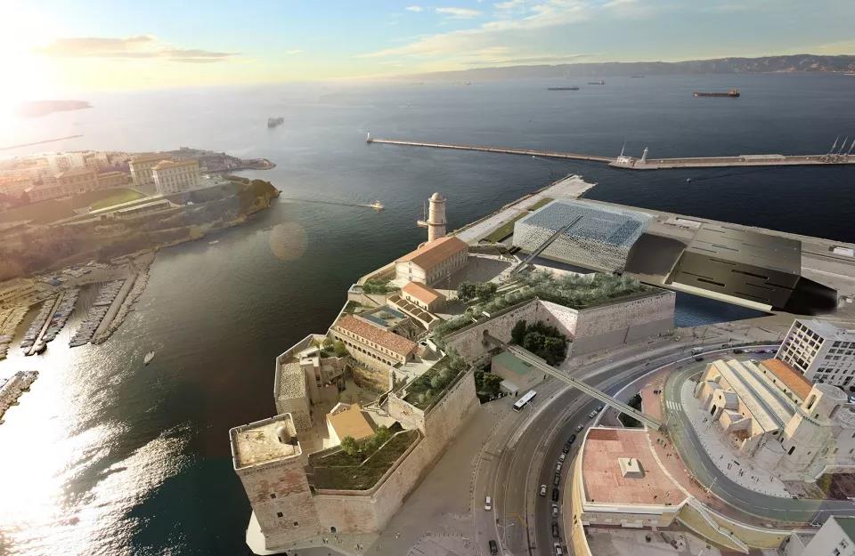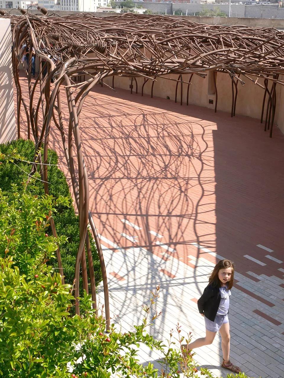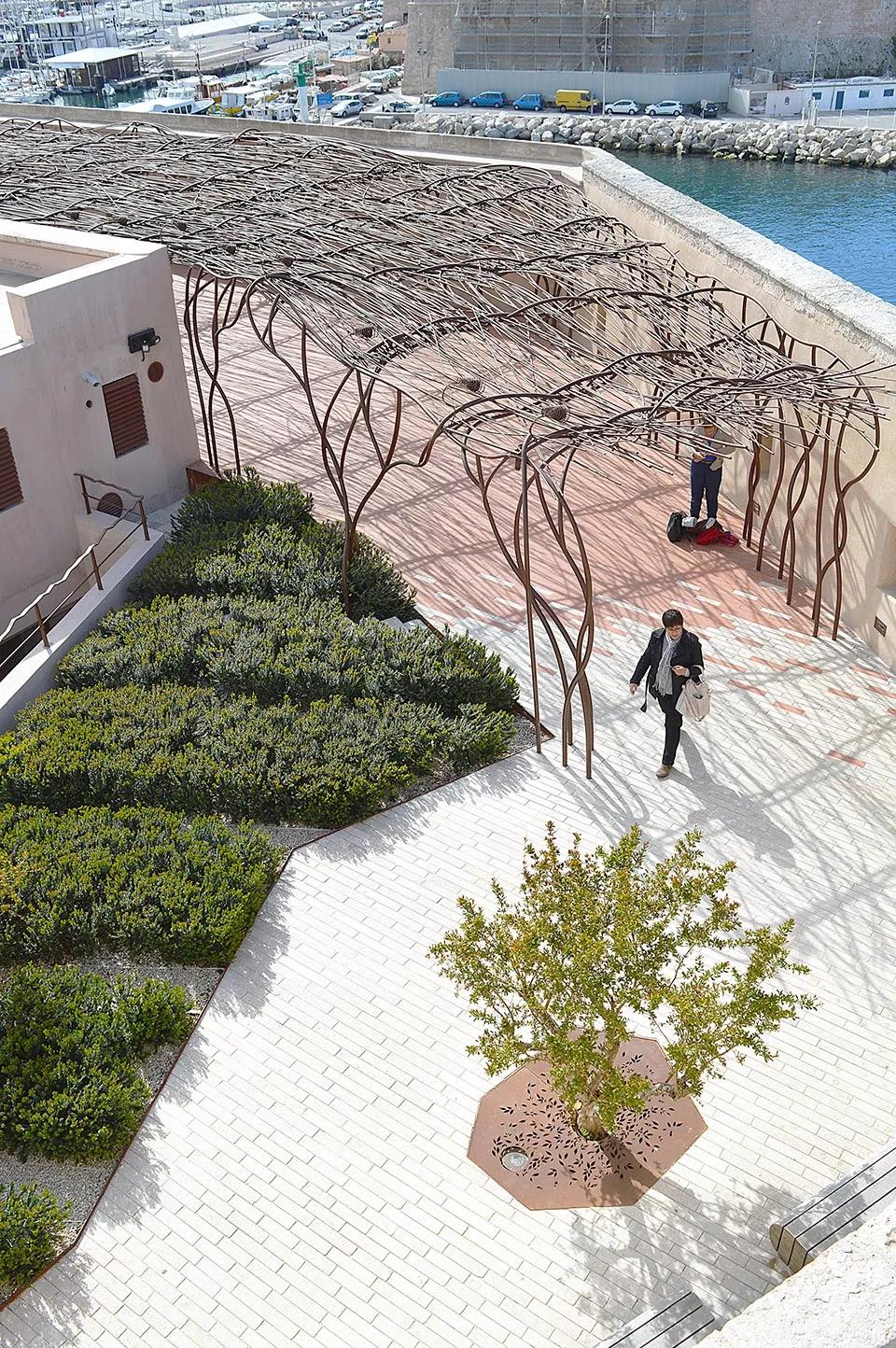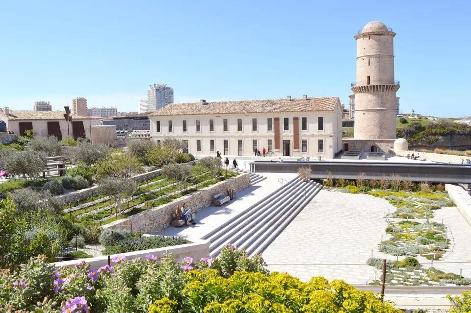 地中海民族植物學之旅空間將其花園空間延伸到了路堤的斜坡上。這個斜坡與d’Armes廣場西側人行步道的直線距離超過200米,享有馬賽市及其地標性建筑(如大教堂主樓和圣羅蘭教堂等)的絕佳景觀視野?;▓@中種植著一系列穆斯林和猶太基督教文化中常見的傳統植被,這些植被如同壁畫一樣,為游客們提供了一個近距離接觸和體會地中海民族文化的機會。