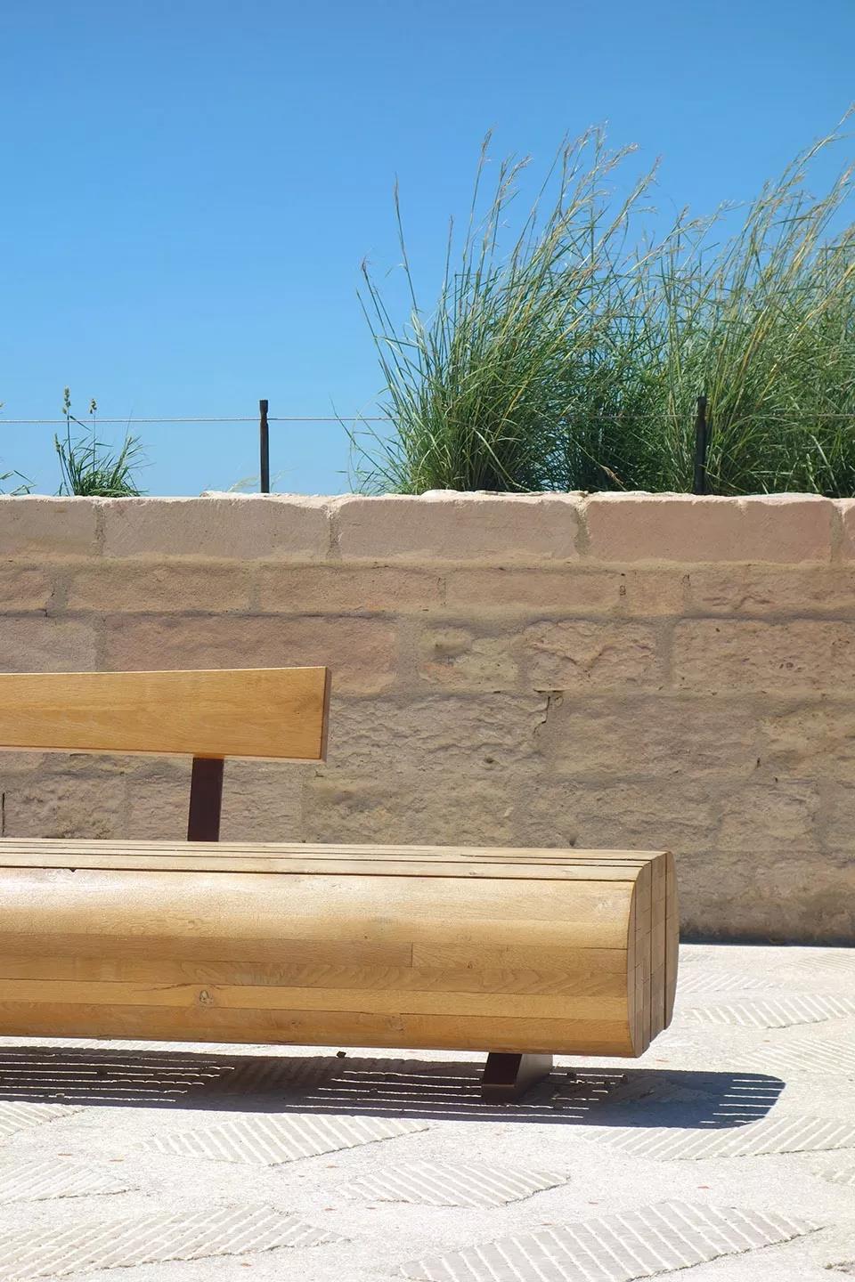 退臺式休息空間位于d’Armes廣場的東側,坐落在Georges Henri Rivière大樓的對面,與Georges Henri Rivière大樓同長,并在與Mucem人行天橋交匯處向北轉折。木制座椅可以提高戶外生活的舒適度。這處休息空間自帶高差,通過一系列大小不一的石階和坡度為4%的之字形石質坡道來實現彼此之間的聯系。坡道系統從d’Armes廣場的南側開始,一部分延伸到東北側的人行天橋處,另一部分則通向東側的山地花園。