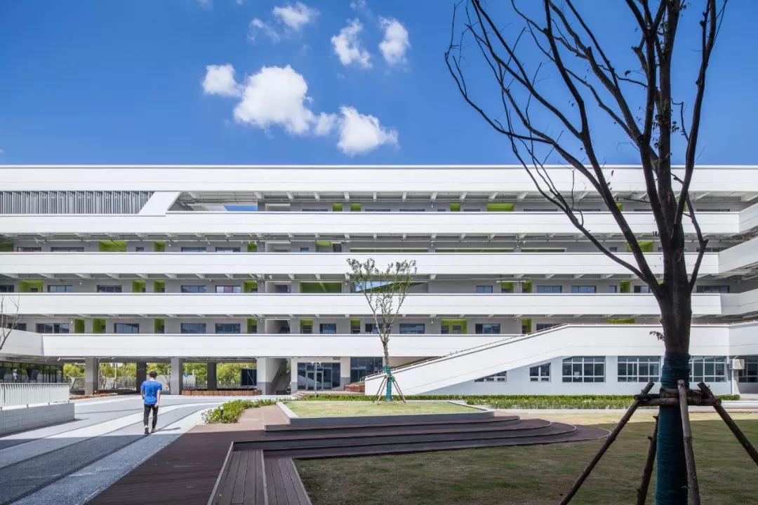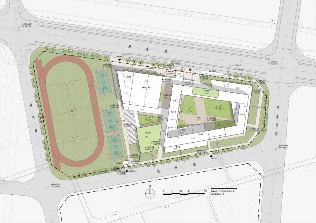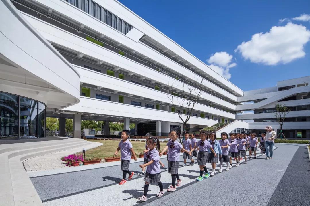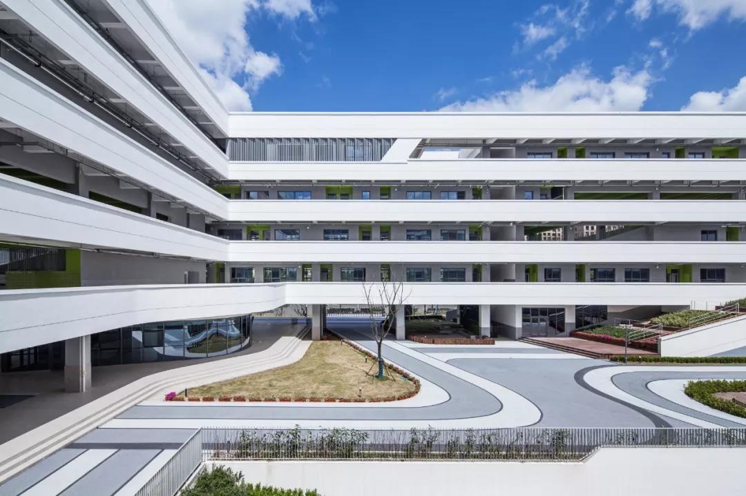庭院幾何式的景觀劃分是整體建筑形態的有機延續,引導學生在此開展豐富多彩的活動。庭院中的雨水花園、海綿城市展示等景觀設施則給學生提供了近距離親近自然的機會,精心搭配的植物品種也會隨著四季變化呈現出不同的校園景色。
