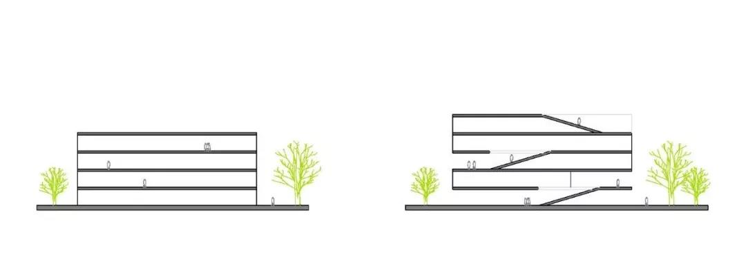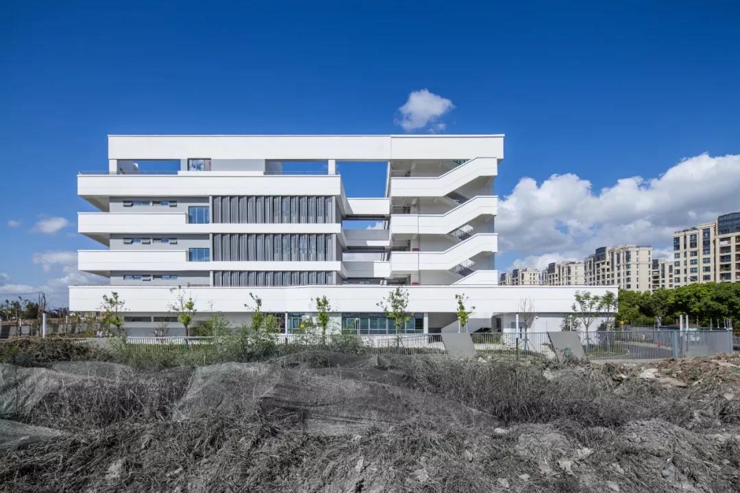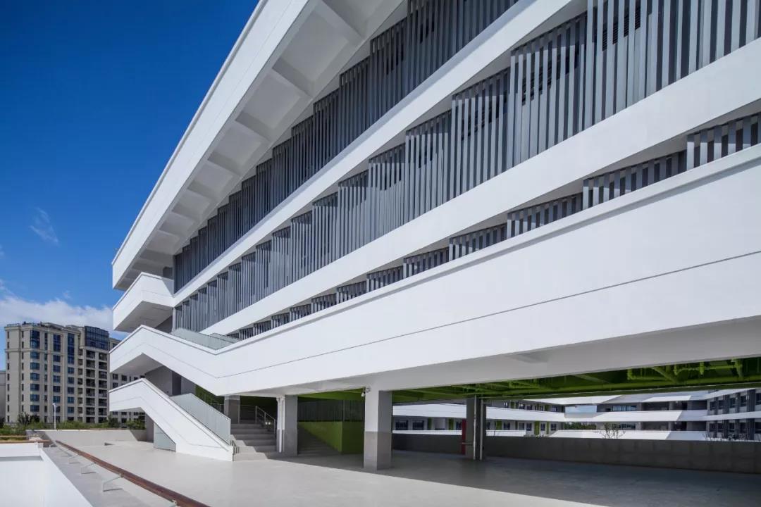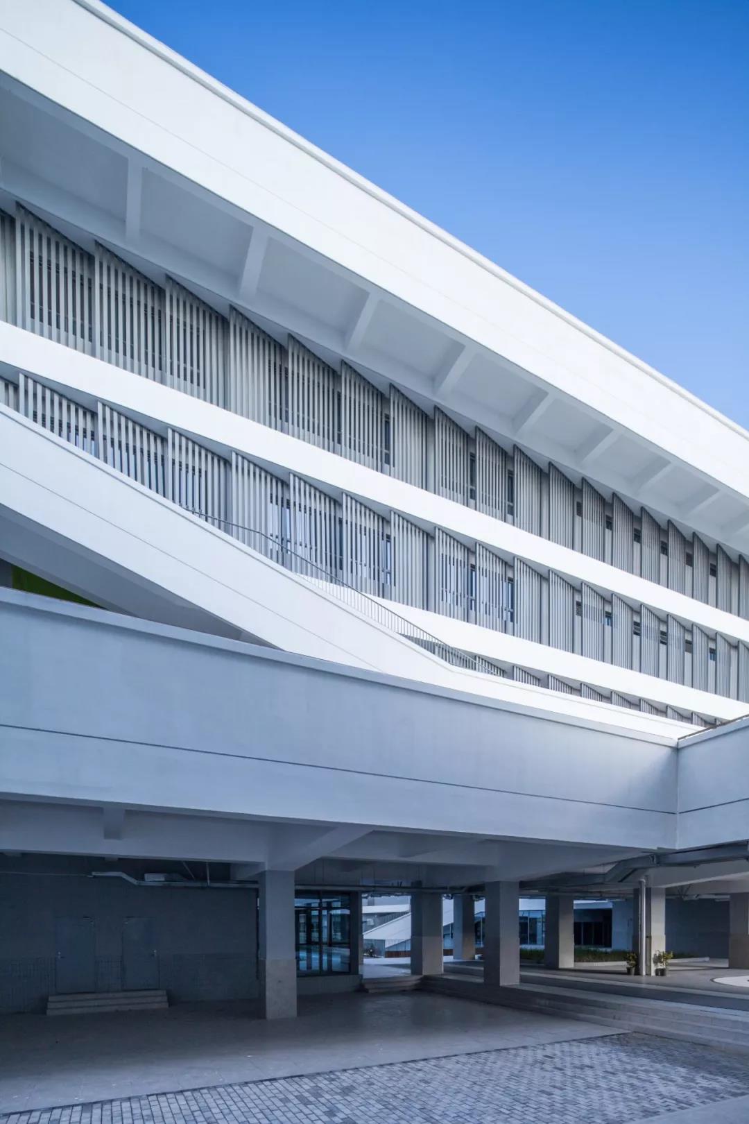 純粹的橫向線條是本項目建筑立面的主要組成,結合空間形態的線性穿插塑造出極具特色的純凈視覺效果。各單體之間通過平臺聯系形成整體,讓立面體塊呈現出光影秩序感的同時也充滿豐富的變化。