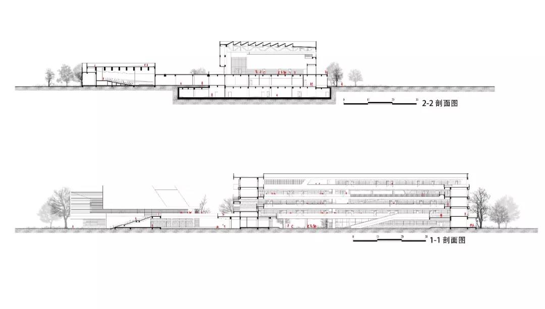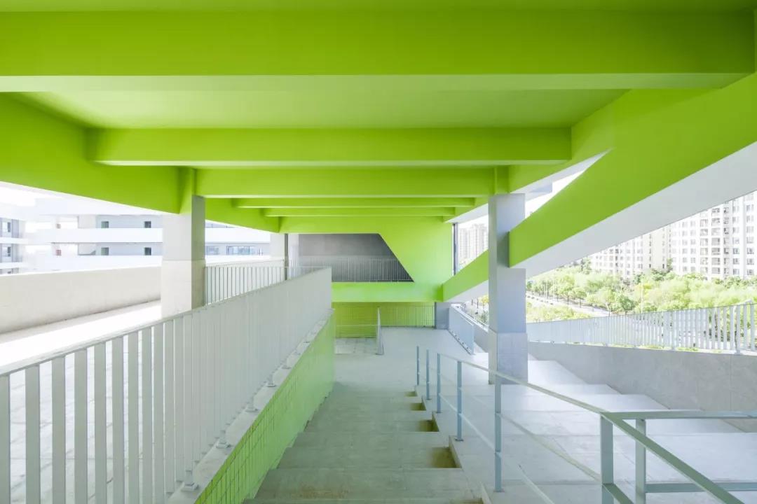從下沉式圖書館到屋頂花園,靜態的空間不斷產生變化,也不斷引導使用者產生新的思索??臻g場景的功能與學生行為的有機互動、相互滲透,鼓勵學生思維的發散,也成為學校特色教育的起點。