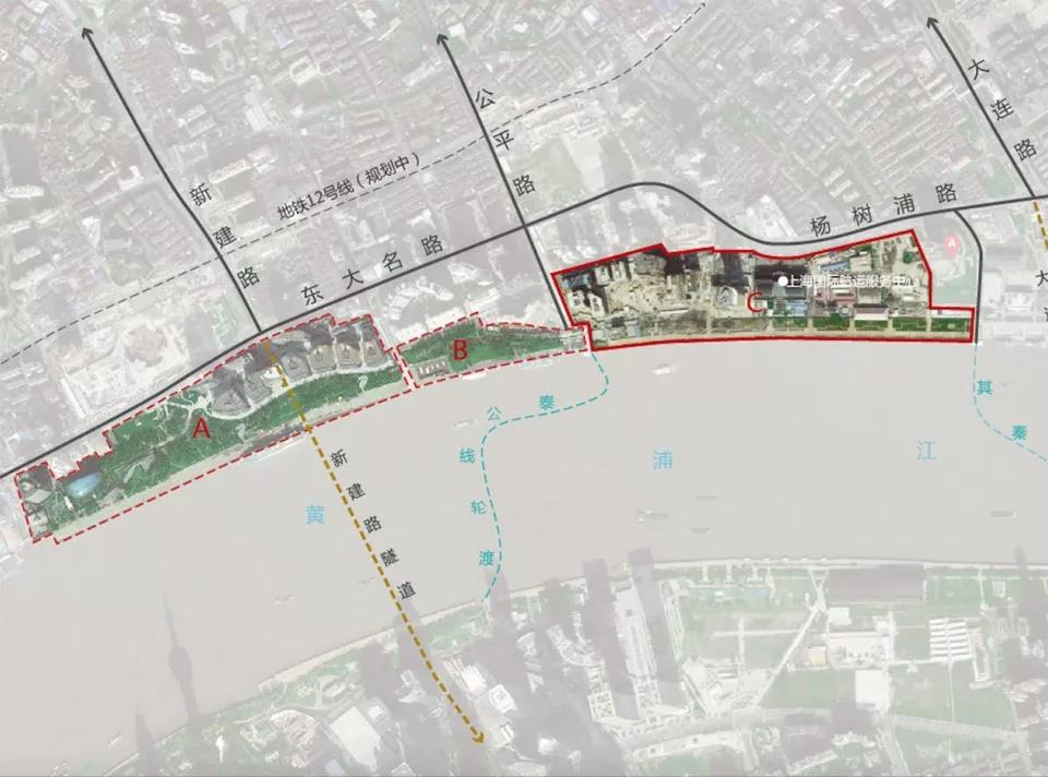 項目位于上海市虹口區北外灘濱江綠地C區,匯山地塊,東起秦皇島路輪渡站,西至公平路輪渡站,北側為在建的上海國際航運服務中心項目及擬建的大連路泵站搬遷工程,南臨黃浦江。基地用地面積: 42,785 m2,其中碼頭及觀景平臺面積: 18,186m2。