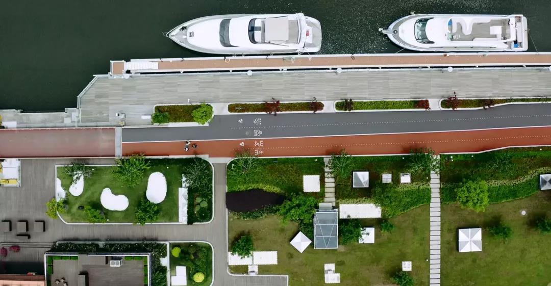 上海市因港而興,如果說上海是現代中國的鑰匙,那么港口碼頭則是現代上海的門戶。方案以三個入口廣場為載體,設置港口文化主題區,講述了上海港口發展的歷史與精神。在濱江整體布局上,立足于“建設上海國際航運中心”的國家戰略高度,以“打造北外灘航運服務集聚區”為目標,具有全國首創的節能節水型船閘的國航中心游艇港池在該區域落成,其水域總面積達到2.1萬平方米,船閘開啟即與黃浦江相連。游艇港池與西側國際客運中心大綠地的交相輝映,在北外灘地區形成了“西綠東水”的開放空間整體格局,共同構成北外灘區域乃至整個上海城市濱江景觀的新亮點。