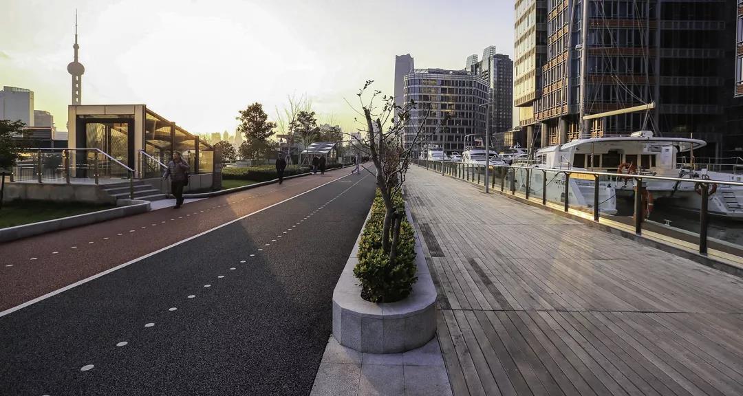 ▼人們在該區段2.5公里長的黃浦江沿岸散步、騎行或慢跑