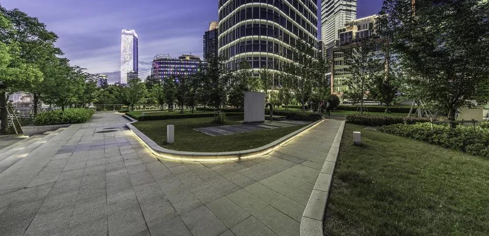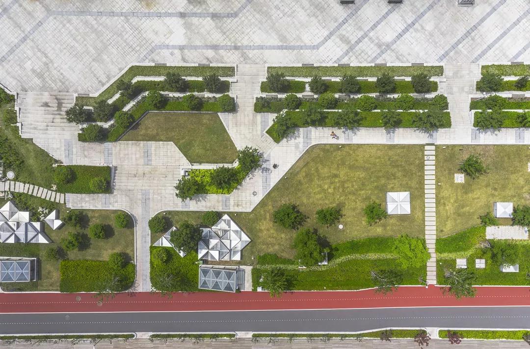 開放的階梯式生態景觀綠核連接濱江商貿,將線性的濱水帶與商業辦公區建立直接聯系,使人群更好的走向濱江,并設計了一系列為辦公建筑與人群直接服務的半私密景觀空間。多元化的項目設置,完善了場地內的活動功能,為商務人群及濱江休閑人群提供“宜業宜樂”的活動場所。