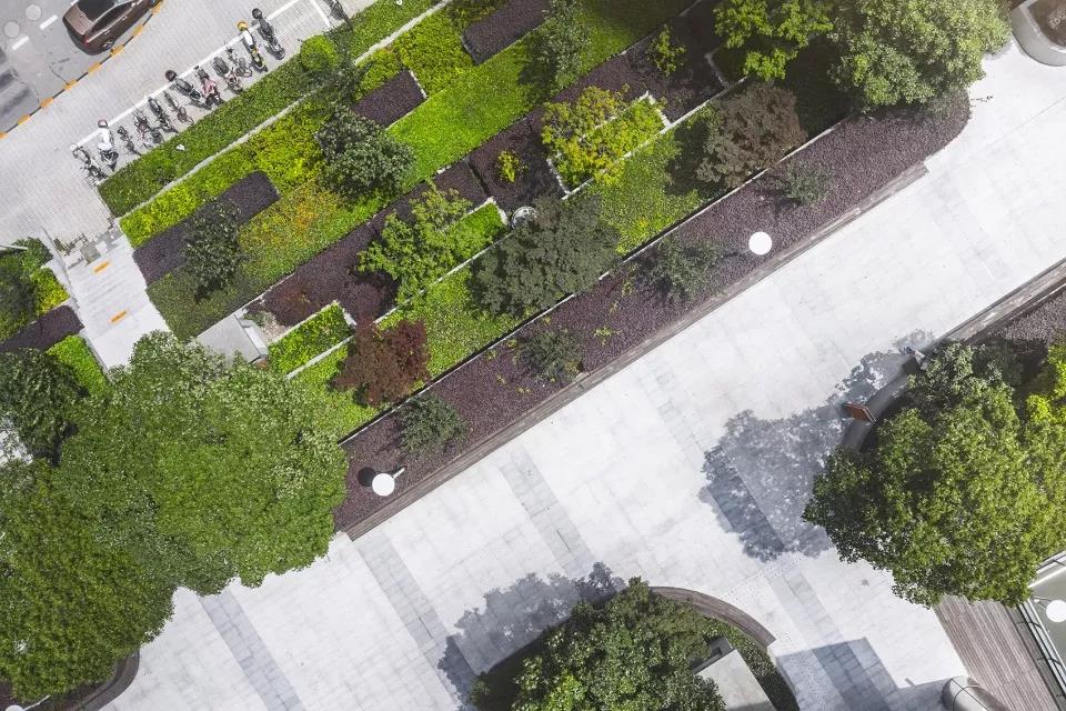 ▼建筑與景觀融為一體,整合了基地內的休閑商業空間