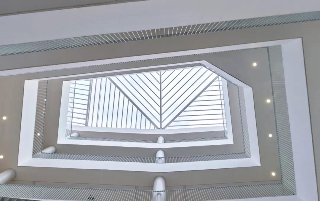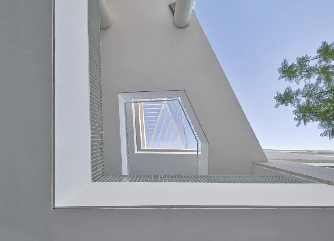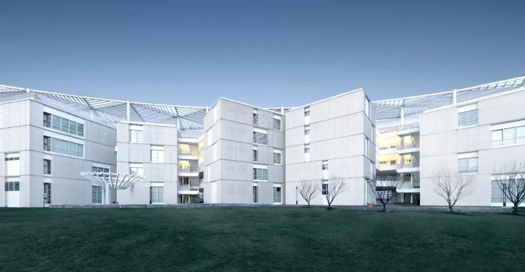 動靜有致的校園,成為課間10分鐘的活力催化劑。內庭院猶如峽谷般的高低起伏,學術報告廳和禮堂則順勢而建,場地中不乏生態氣息,內圈模數化頂棚為場地帶來了必要的光線控制,整體立面則采用豎向格柵遮擋黑板區直射光線,這樣的方式也為空間加入些許律動。