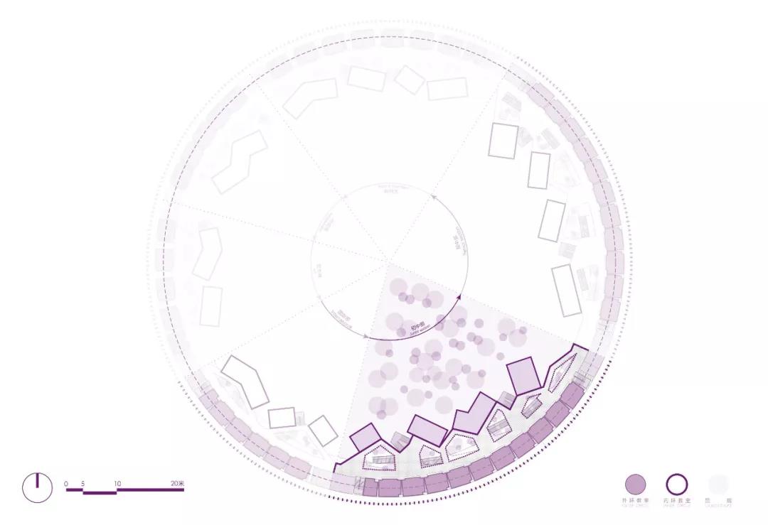 沿外環和內環分布著大小不等的教學空間,環形外圈的教室在流線上更強調效率,內部一般是活動性比較強的選修課教室,自由錯落分布。