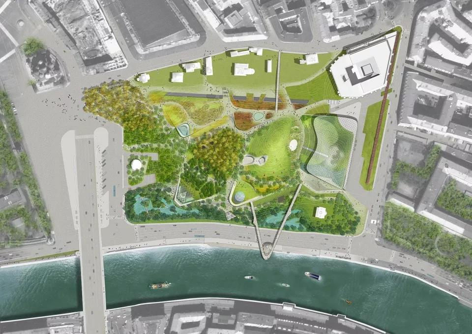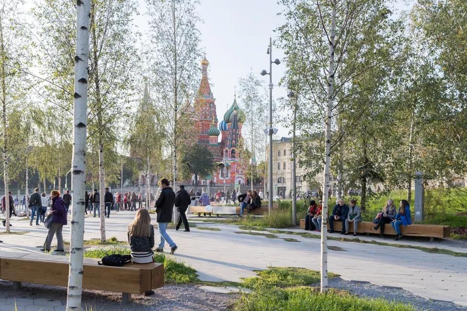 2012年,莫斯科市政府和首席建筑師Sergey Kuznetsov共同組織了一次設(shè)計競賽,旨在將這一歷史悠久的私有商業(yè)區(qū)改造為供大眾使用的公園。最終,由Diller Scofidio + Renfro (DS+R)事務(wù)所率領(lǐng)、Hargreaves Associates和Citymakers共同合作的跨國設(shè)計團隊提交的競賽方案,從來自27個國家的90份提案中脫穎而出。