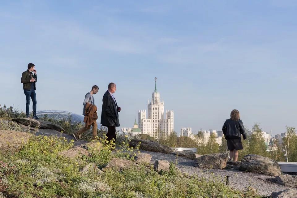 自然景觀與硬景觀的交織創(chuàng)造出一種“粗野的都市主義”,以一種全新的模式介入到莫斯科歷史悠久的、正式而且對稱的公園空間。