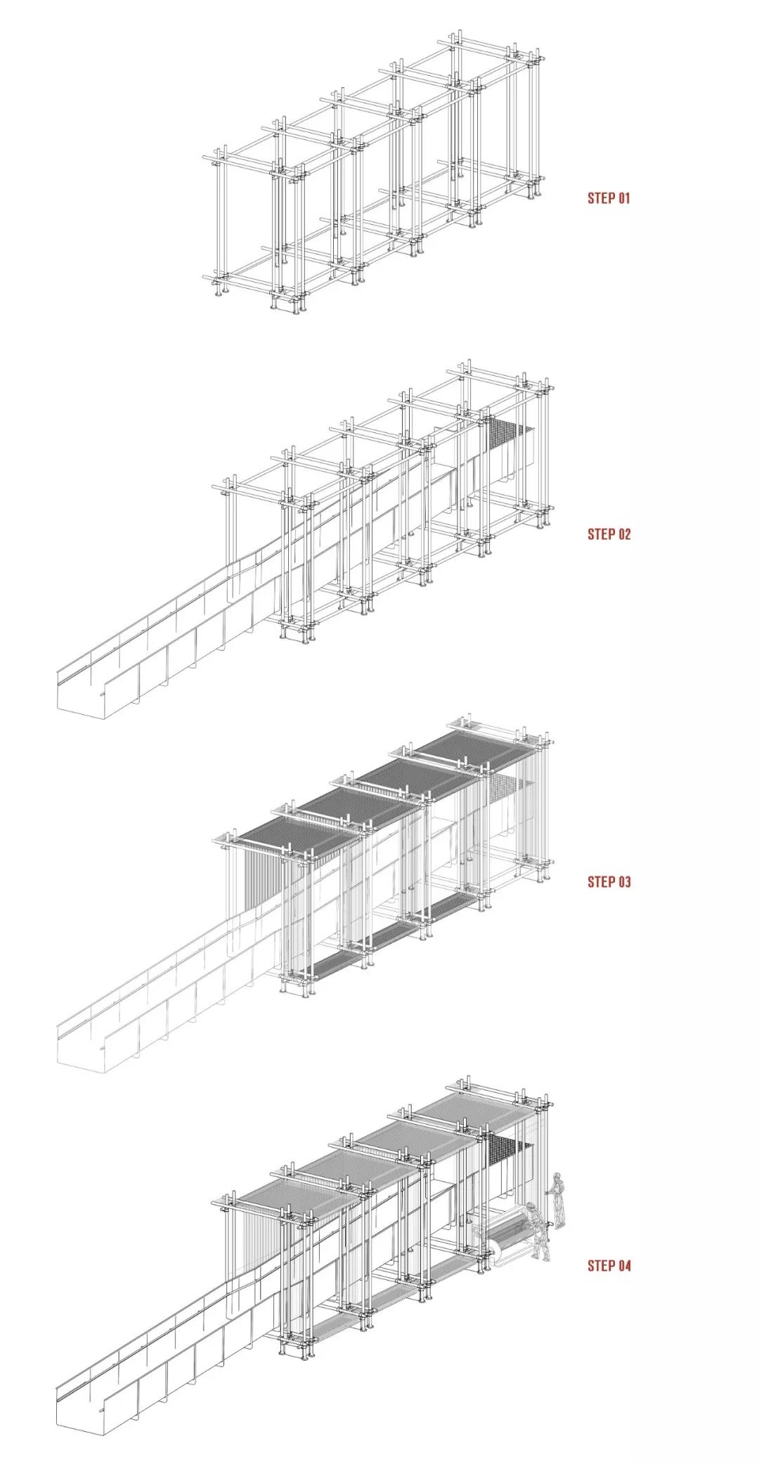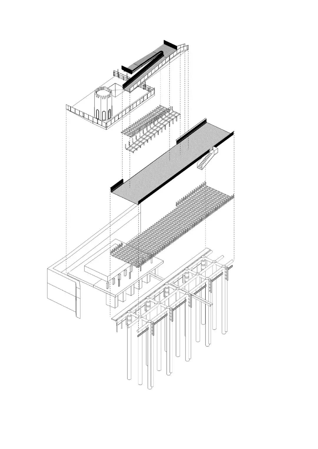 貼近黃浦江的楊樹浦水廠為公共空間的貫通提出了挑戰也提供了機會。利用水中基礎設施的結構作為棧橋的結構基礎,實現了斷點的貫通。同時將正在工作的基礎設施納入景觀設計的范疇,讓人們可以欣賞到原來難得一見的角度和景象,也為景觀設計和公共活動增添新的內涵。