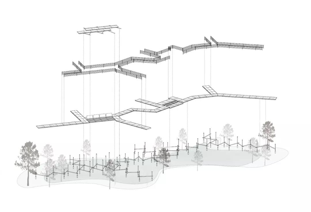 另外通過設置水泵和灌溉系統,濕地中匯集的水還可用于整個景觀場地的澆灌之用。而植物配植以原生草本植物和耐水喬木池杉為主,同時配以輕介入的鋼結構景觀構筑物,形成別具原生野趣和工業特色的景觀環境。