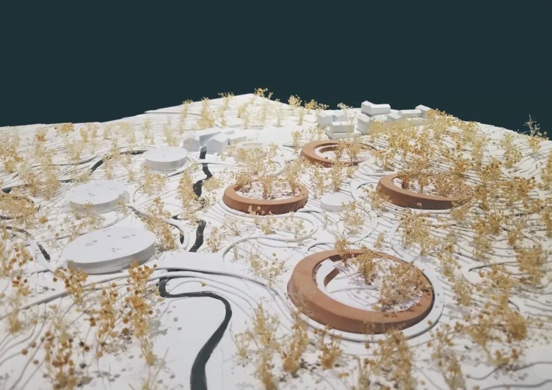 得益于成都平原得天獨厚的自然環境啟發,EID Architecture提出以環境友善及熊貓友善為出發點,融合建筑與自然的和諧共生。設計依托山地地貌順勢而為,勾勒出最原初的幾何圓形,將熊貓及其生存的自然環境懷抱于建筑與景觀之中。