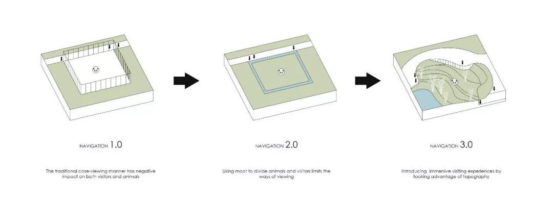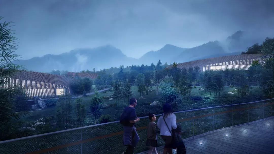 坐落于原生態自然場景之中的熊貓新舍將成為大地藝術的一部分,功能涵蓋室內展示區,熊貓獸舍,后勤區,以及室外活動展示區,為游客帶來沉浸式的探索和發現體驗。