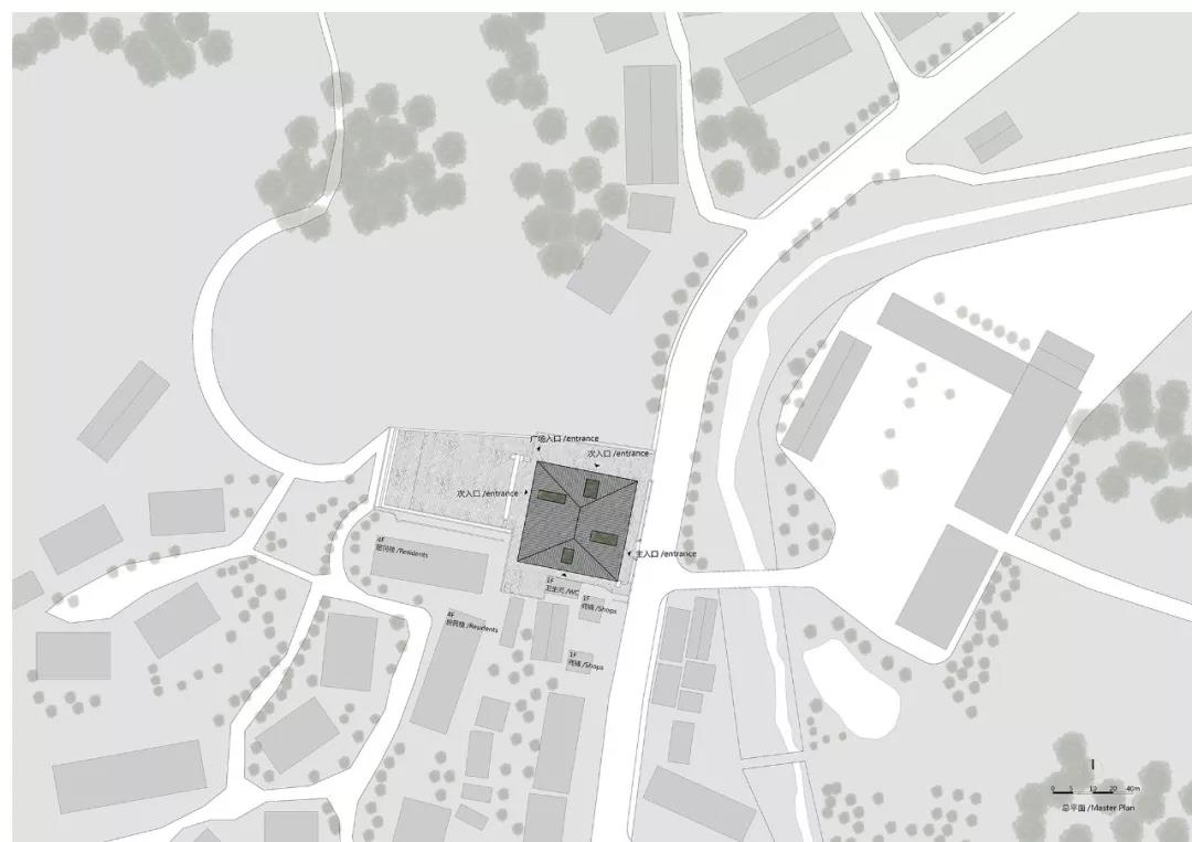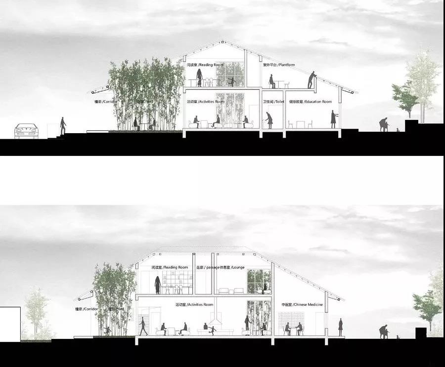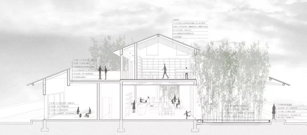 由此引發了我們最本能的想法:營造一個“包容一切活動的瓦屋頂”,籍此去連接詩性的傳統與互聯的未來社區。既營造了“同在屋檐下”的一種身份認同,又讓人們走出來、讓行為發生、從空間層面進行軟性的公共治理,從而逐漸孵化出未來的鄉村社區模型。