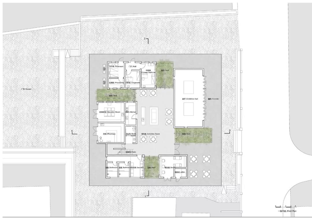 位于一層中心的活動室