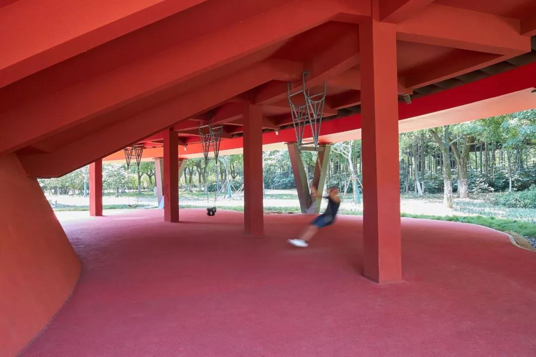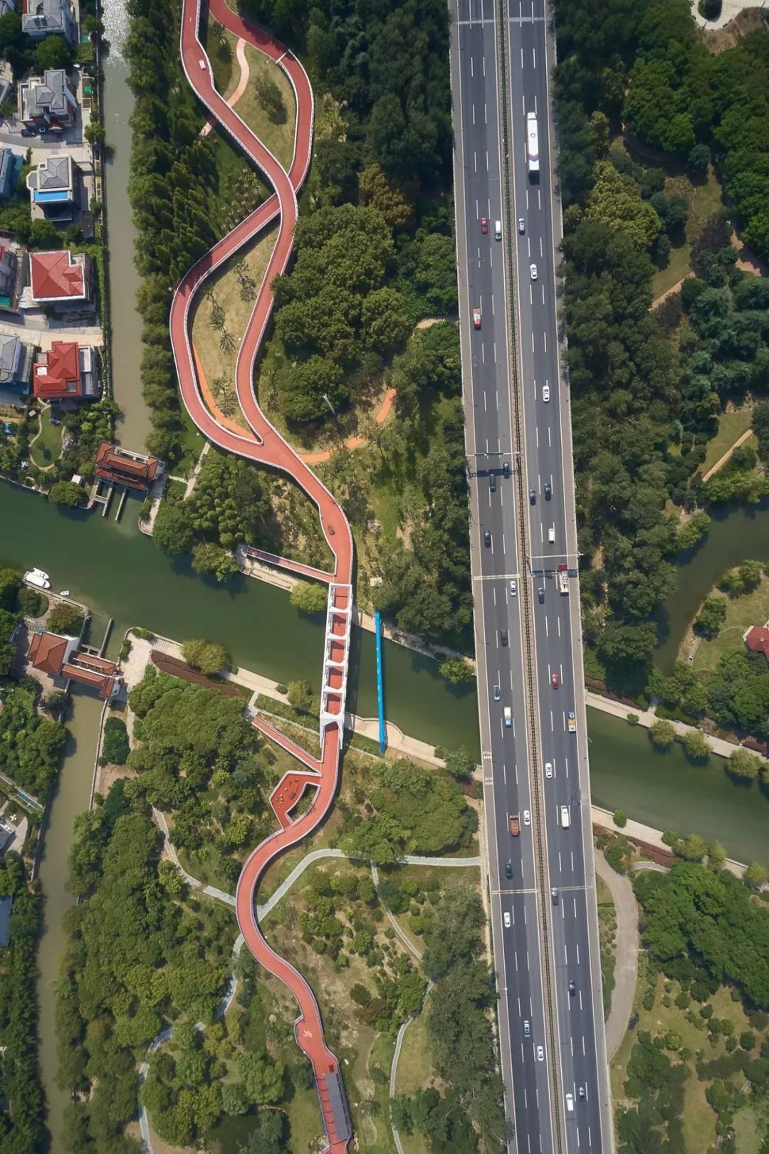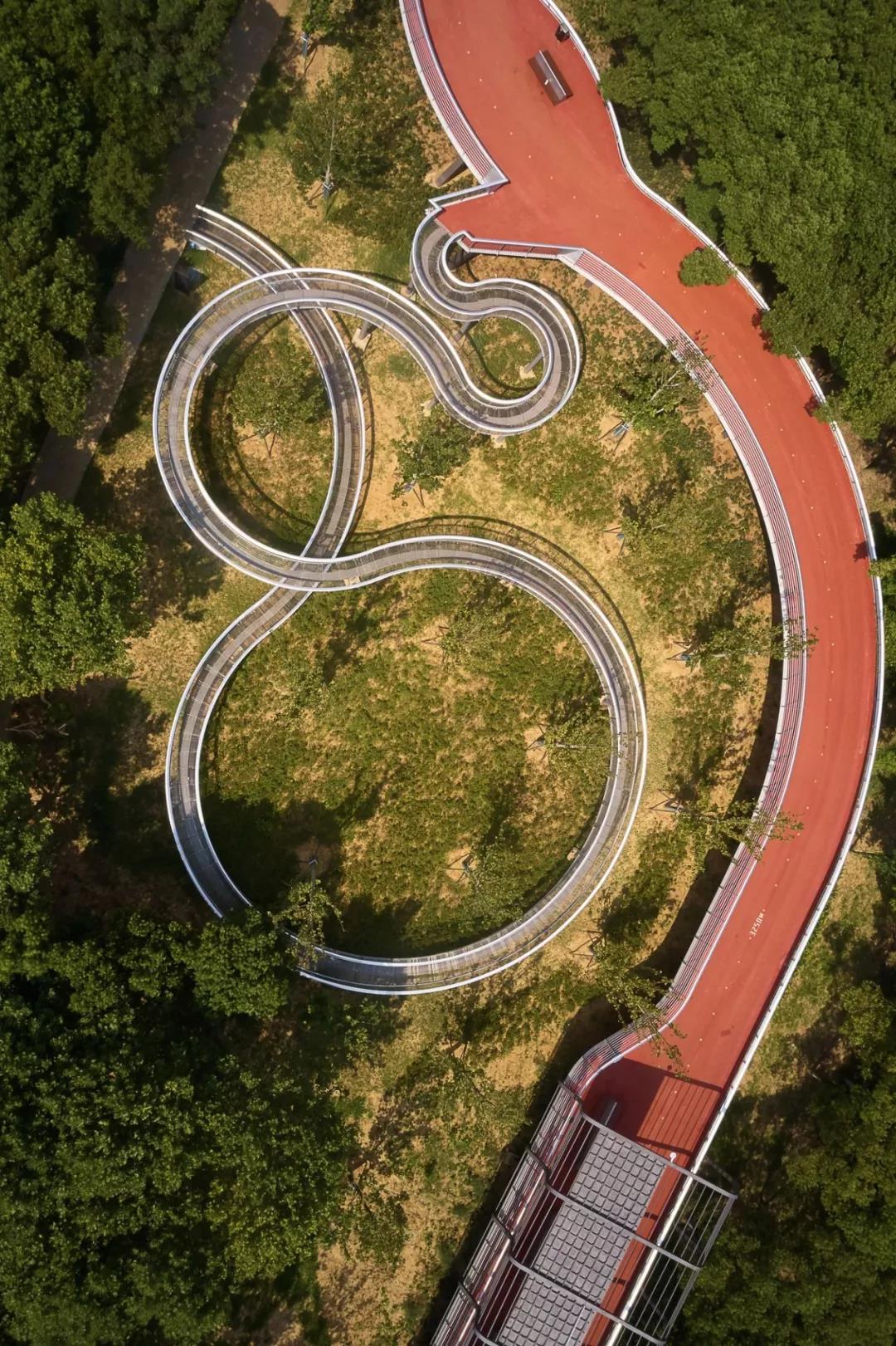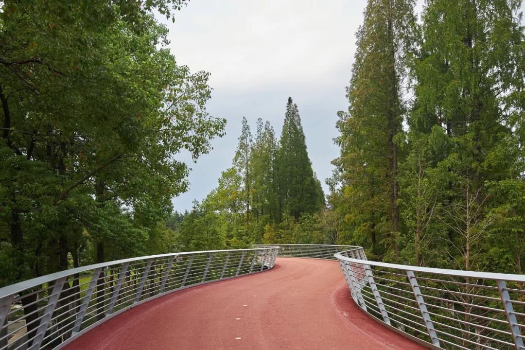 綠道全程采用鋼架與預制件建造,從而降低對公園生態的影晌。