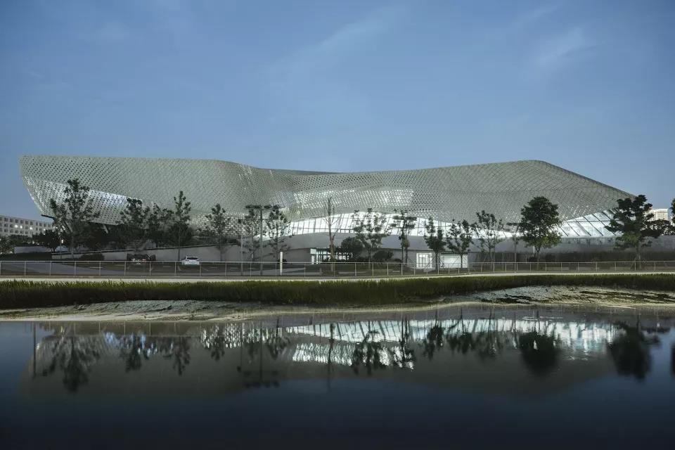 寧波市擁有悠久的陶瓷生產(chǎn)歷史,人們口中所說的陶瓷之路(Ceramic Road)就是從這里開始的。可以說,從古至今,寧波這座城市在中國乃至國際的陶瓷貿(mào)易中都發(fā)揮了重要的作用。但這并不是本項目選擇釉面陶瓷作為建筑表皮的唯一原因。這種釉面陶瓷不僅致敬了當?shù)氐臍v史文化,更能短暫地反射周邊的景觀環(huán)境。根據(jù)時間、季節(jié)和天氣的不同,反射在建筑表皮上的圖像也不盡相同,從而創(chuàng)造出一種永遠處于變化之中的動態(tài)感。