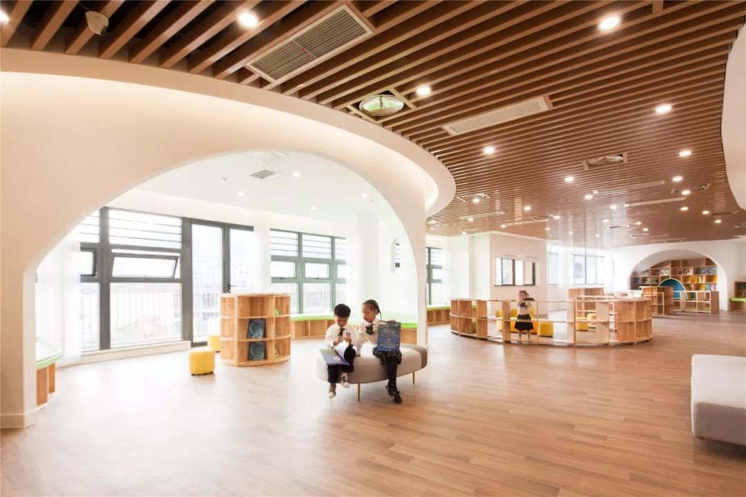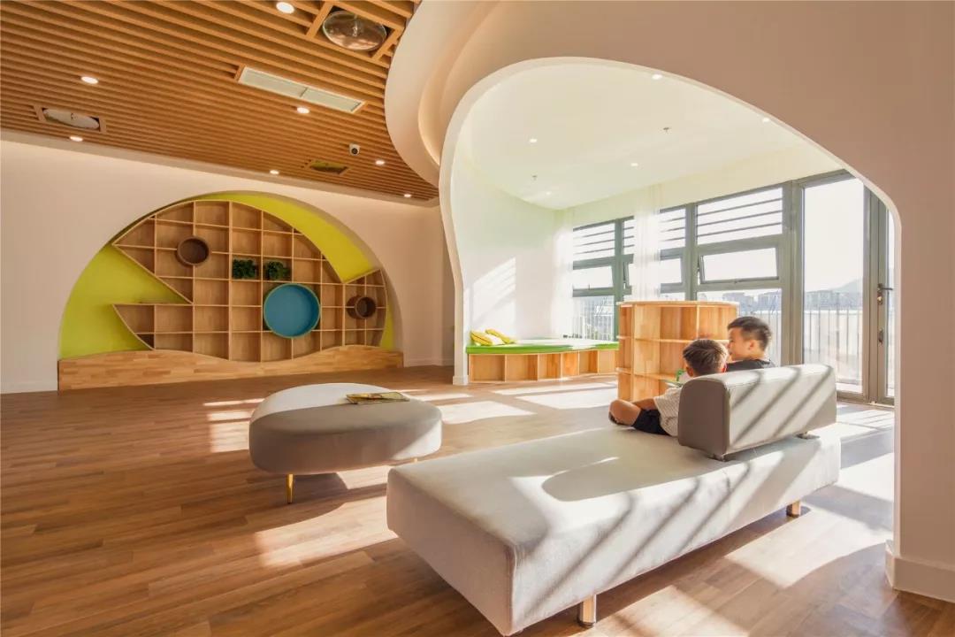 而多功能廳則更將陽光利用到了極致,收起窗簾和投影幕布,它一下變成了孩子們的趣味活動室,陽光滿溢,自由自在;將窗簾放下,點亮投影,這里便成為孩子盡情展現自己的舞臺。