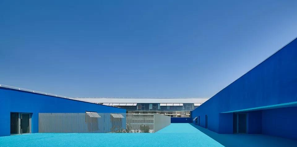 藍色成為了項目中的一個必然選擇,使建筑物與地平線和湛藍的天空相互對話。雖然建筑中的空間是復雜的,卻仍然保持著相輔相成的關系。