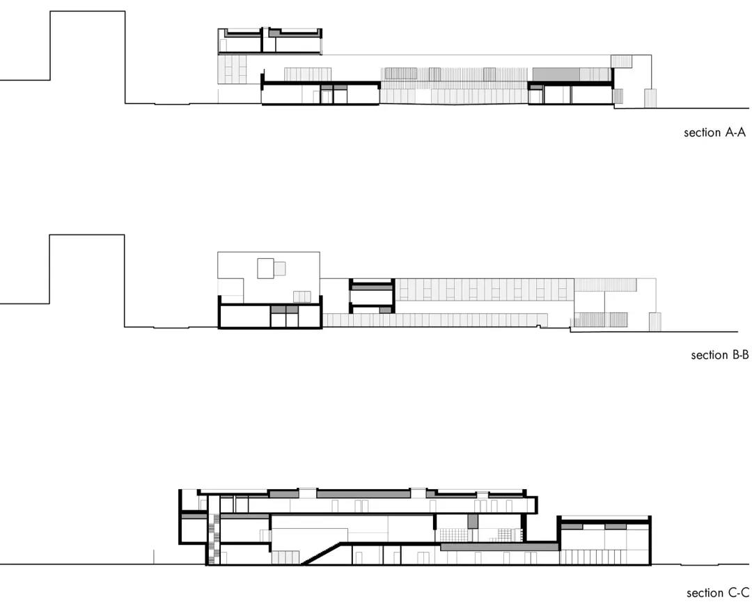 建筑體塊包含了多個凹進空間。多樣化的庭院和天井將自然光引入建筑的核心地帶,為室內增添了柔和的氣息。