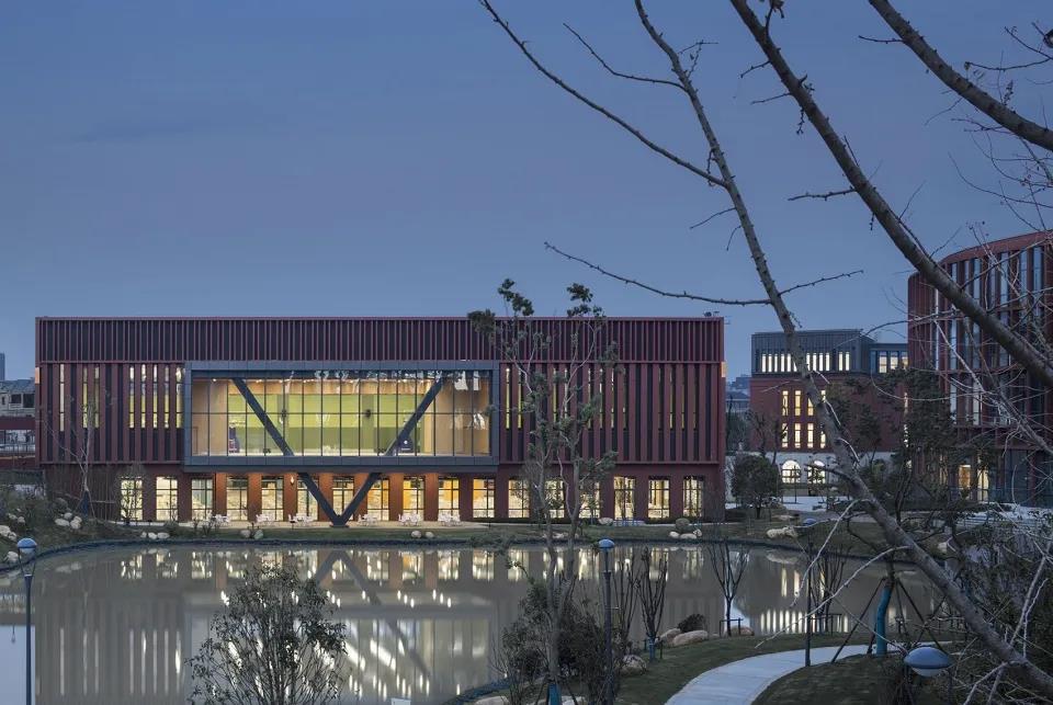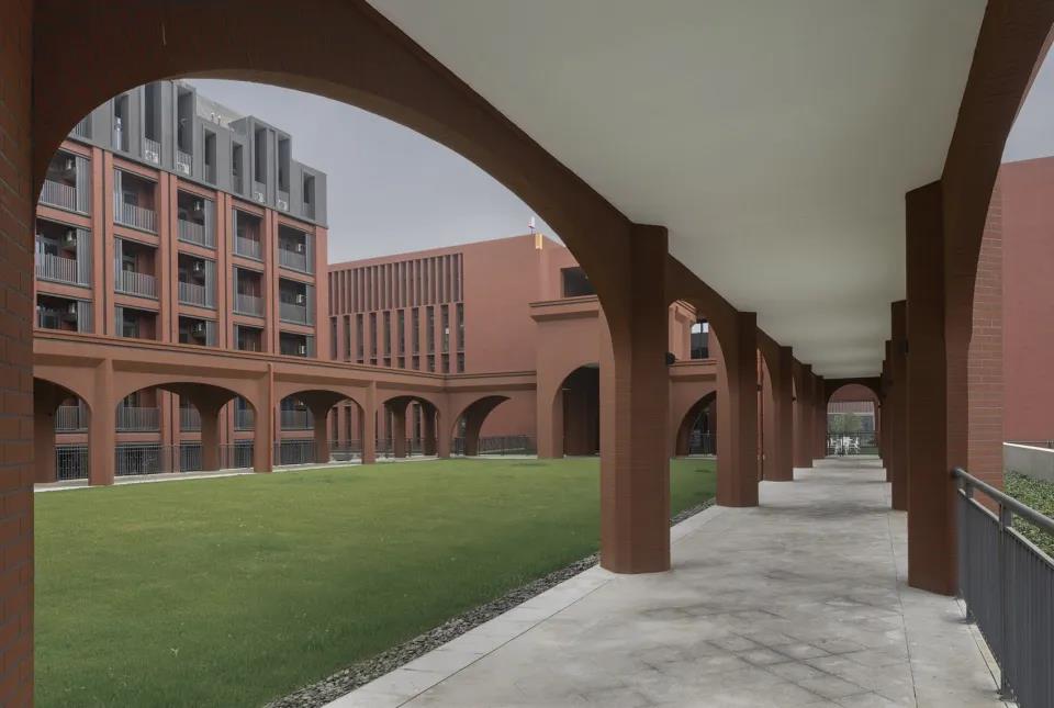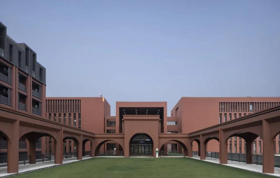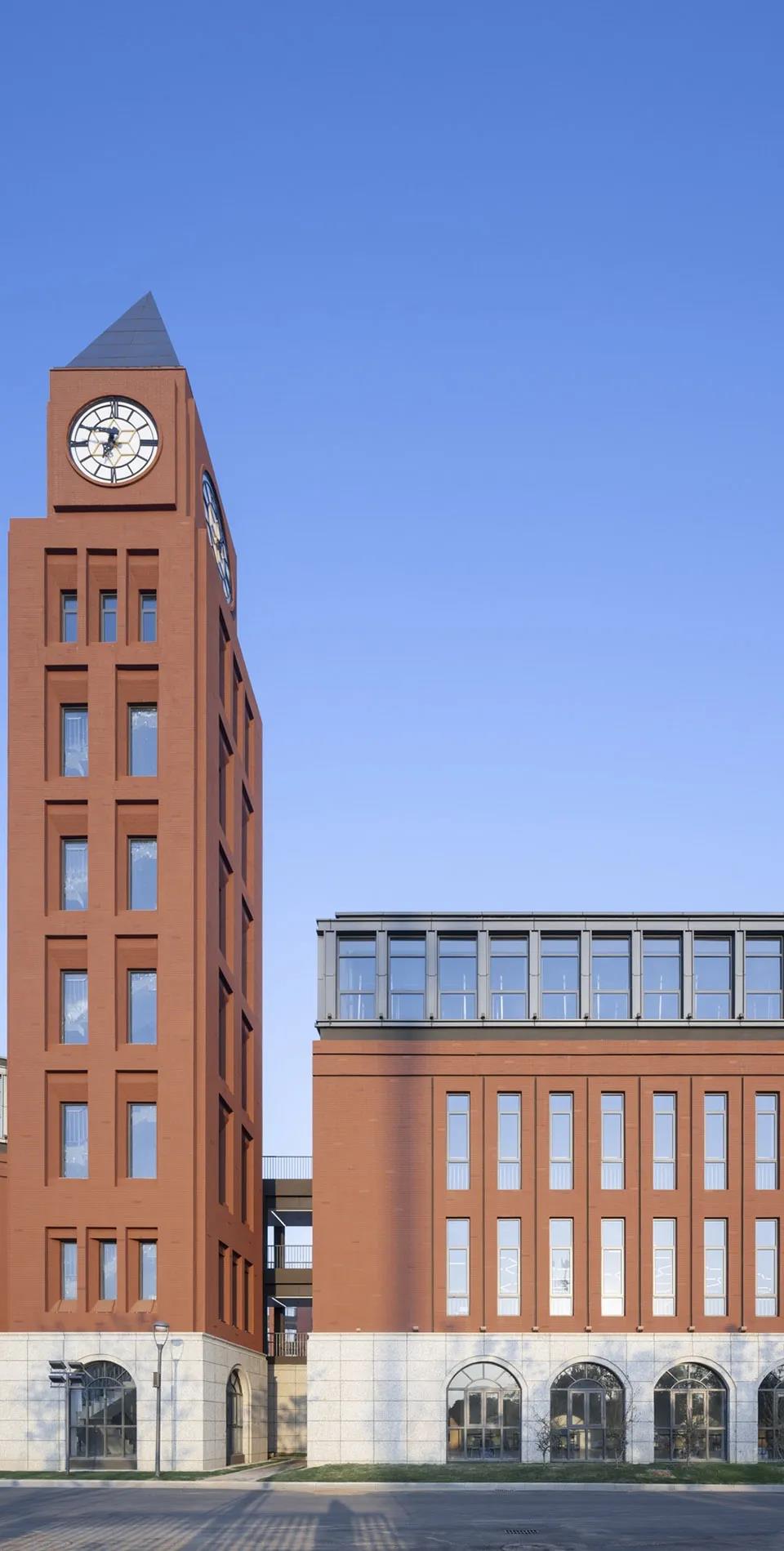 在“公學”、“藝苑”、“方山”、“智城”這四個關鍵詞中,“公學”指代校園文脈。這所國際化學校對傳統西方公學的人文精神、校園空間和場所尺度中進行提煉和還原,并融合至中國及當代多元文化中,再現了一所“當代公學”。設計中以貫穿南外各校區的紅磚作為校園的基調色,在致敬南外歷史的同時也傳遞出濃郁的學院風格。