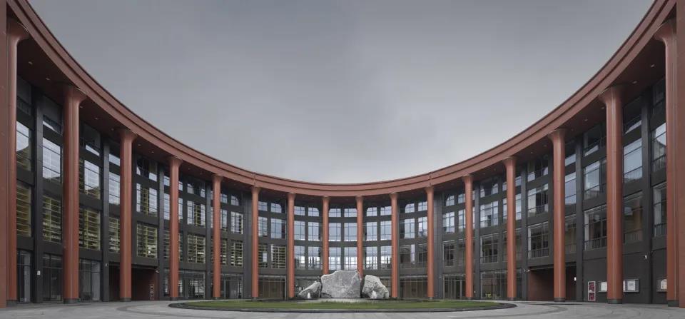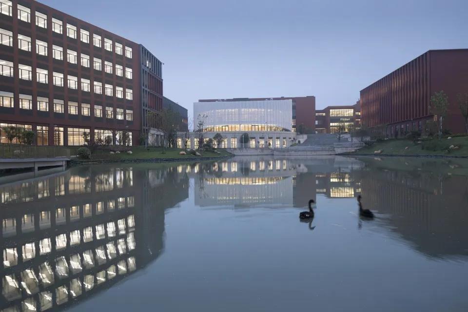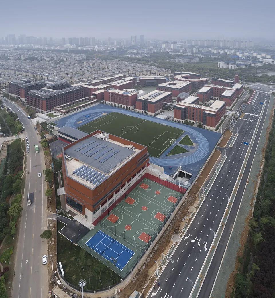 校園建筑頂部以現代簡潔的深色金屬箱體對傳統坡頂進行了迭代創新,基座輔以暖白色石材基座,采用經受時******驗、更為經典永恒的建筑形式和語言,形成典雅、人文、理性的校園基調。
