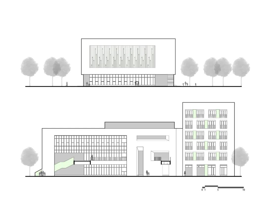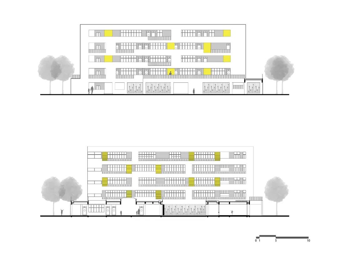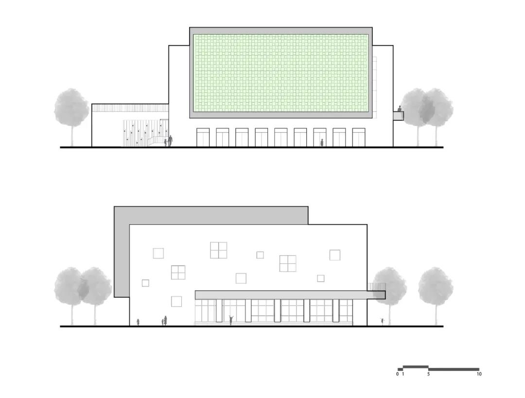 低齡組的院落更零散和微小,設(shè)置較大的集中引導(dǎo)空間,其位置與各功能聯(lián)系更緊密,使用也更為方便。中高齡組團(tuán)的院落布置邏輯分明,連接路徑清晰,并將兩組團(tuán)相鄰布置,便于孩子們的互動和交流。
