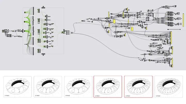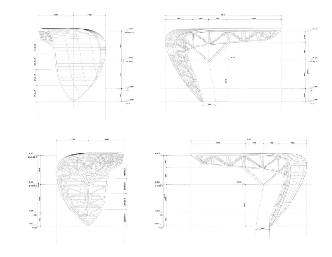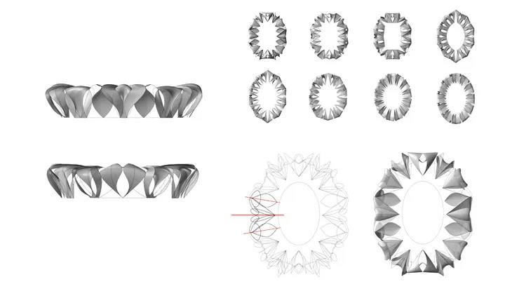 設計過程中,采用了先進的參數化程序和模型技術來開發和優化室外建筑外殼。幾何化的設計語言與其他功能分析與編程相整合,將概念方案一步步落實成施工圖紙。由于模型是參數化的,設計變更可以在極短的周轉時間內完成,這消除了傳統建模中的常見的“建筑-測試-放棄”的方法。