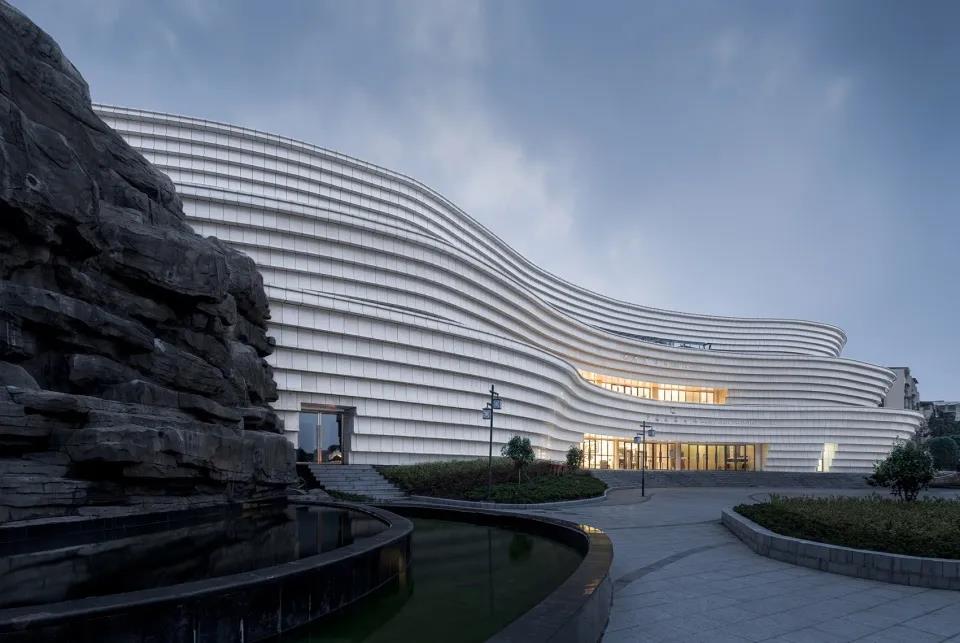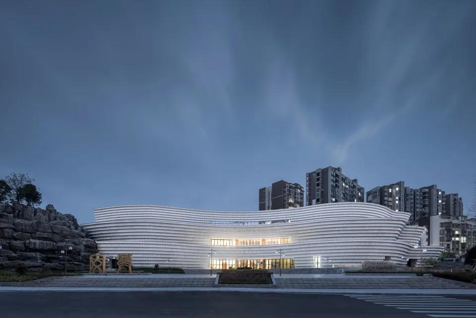 ▼展示中心外觀夜景,以一種更為綜合化與現(xiàn)代化的方式展現(xiàn)靈渠的歷史文化