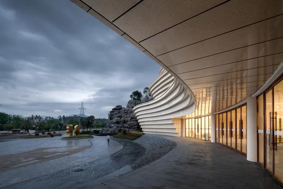 在設(shè)計主題上,興安縣承載著獨一無二的、地域性的嶺南與漢文化交融的積淀;靈渠的歷史地位不言而喻,以靈渠的水為文化的載體承載所謂“曲水流觴,飲水思源”;以柔的方式表達:靈渠雖為人工而成,但與自然融為一體;可謂“巧奪天工”;雖經(jīng)歷兩千年,依然呵護并滋潤著興安人民 —— 以形象化的語言,更能讓人感受歷史與現(xiàn)代的空間交叉與流動;對于興安來說是一個開放的地標(biāo),更具有加強該城市文化目的地的國際與歷史意義。
